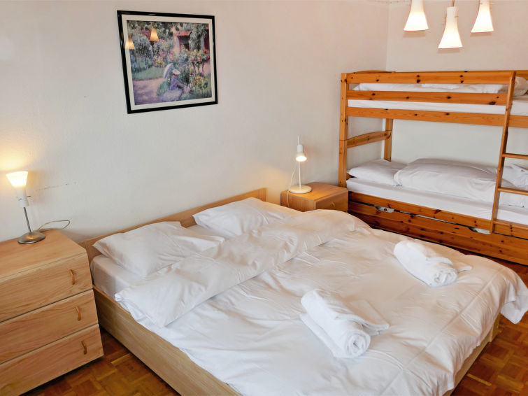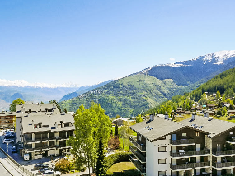 "Valaisia 44b", apt 2 pièces 50 m2 au 4ème étage. Aménagement simple: séjour/salle à manger avec TV (câblée), radio et lecteur CD. Sortie sur le balcon. 1 chambre avec 1 x 2 lits superposés, 1 lit double et bain/WC. Sortie sur le balcon. (lave-vaisselle, 4 plaques vitrocéramiques, micro-ondes, appareil à raclette, service à fondue (fondue au fromage)). Bain/WC. Grand balcon, situation est. Meubles de terrasse. Belle vue sur les montagnes et la vallée. A disposition: sèche-cheveux. Internet (Connexion WIFI, gratuit). Place de parking No 44 (couvert), hauteur 260 cm. Veuillez noter: logement non-fumeur.