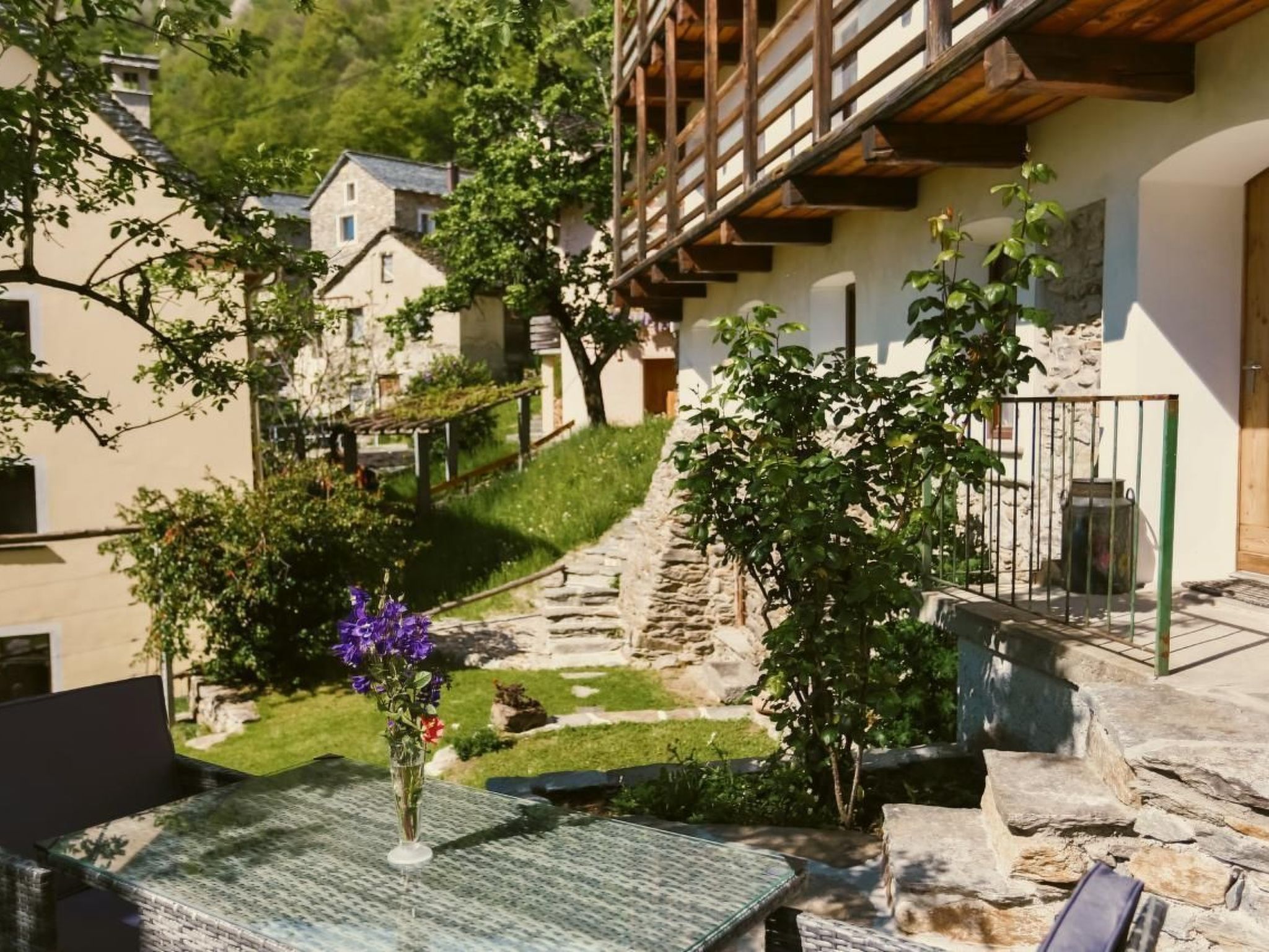 The place offers the possibility of a relaxing and regenerating stay in a true place of energy in contact with nature and the traditions of one of the most fascinating valleys of the Southern Alps. The building, built from the end of the 18th century onwards, retains the typical features of the time: gneiss beola roof, mighty stone walls, centuries-old larch beams, typical terraces with balconies and large stone vaulted cellars.