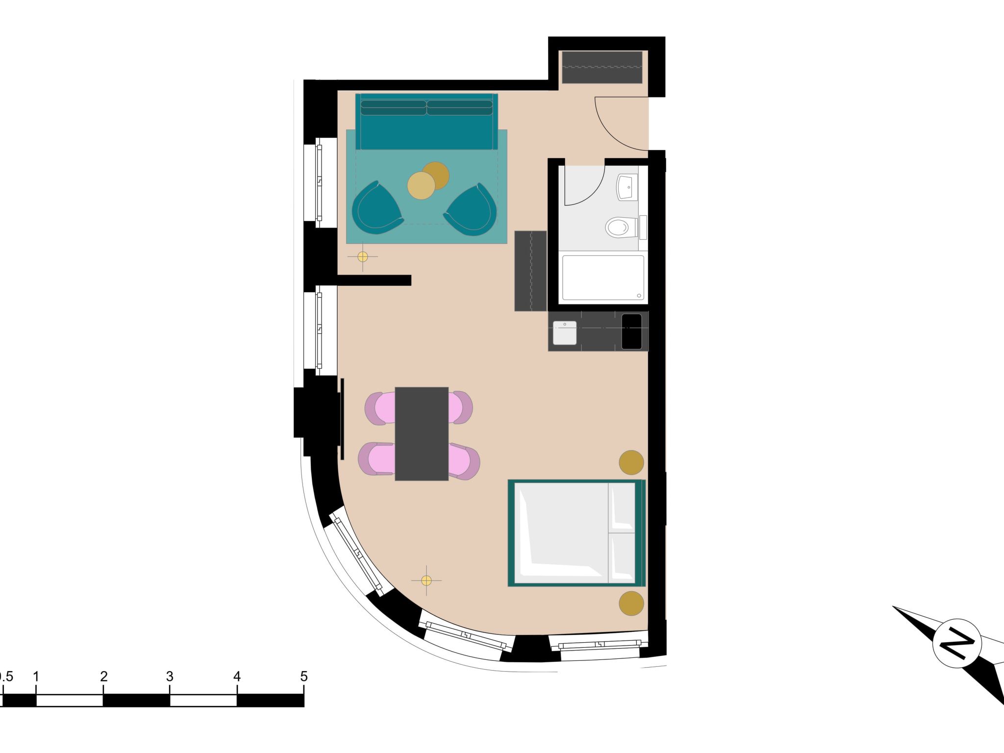 - Nombre de chambres à coucher: Studio (pas de chambre séparée)