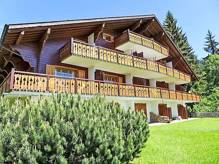 Villars: Chalet "Sapin Bleu". Dans le haut de la station de Villars, dans le quartier de La Résidence, situation tranquille, ensoleillée, à 100 m du domaine skiable, dans la verdure, orientée sud. Infrastructures de la Maison: sauna, ascenseur, local pour les skis, chauffage central, lave-linge (en sus), sèche-linge (en commun). En hiver, merci de prévoir des chaînes. Parking public. Magasins 2.6 km, magasin d'alimentation 1.3 km, restaurant 1.9 km, boulangerie 1.9 km, centre à 20 minutes à pieds, arrêt de bus 1.9 km, gare ferroviaire "Villars" 2.9 km, piscine couverte 2.2 km, centre thermal "Lavey-les-bains" 19 km. Port plaisance 25 km, terrain de golf (18 trous) 8 km, tennis couvert 3 km, centre sportif 3 km, train de montagne 2.9 km, télécabine 1.4 km. Arrêt du ski-bus 1.5 km, école de ski 2.8 km, école de ski d'enfants 3 km, patinoire 2.2 km, jeux pour enfants 3.2 km. Veuillez noter: voiture recommandée. Service de navette gratuite desservant le domaine skiable Villars. Veuillez noter: D’autres appartements sont également proposés à la location dans cette maison de vacances.