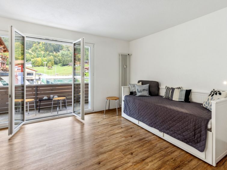 Immeuble "BeKb-Gebäude", de 3 étages. Au centre de Wengen, situation centrale, animée. Infrastructures de la Maison: bar. Sur demande possibilité d'achat avant l'arrivée. Magasins 30 m, magasin d'alimentation 50 m, restaurant, boulangerie 30 m, arrêt de bus "Lauterbrunnen (by train)" 3.1 km, gare ferroviaire "Wengen" 100 m, piscine 600 m. Téléphérique, remontées mécaniques 50 m. Les lacs connus sont facilement accessibles: Thunersee 13 km, Brienzersee 13 km. Veuillez noter: complexe de vacances sans voiture. L'arrivée se fait par téléphérique/télécabine.