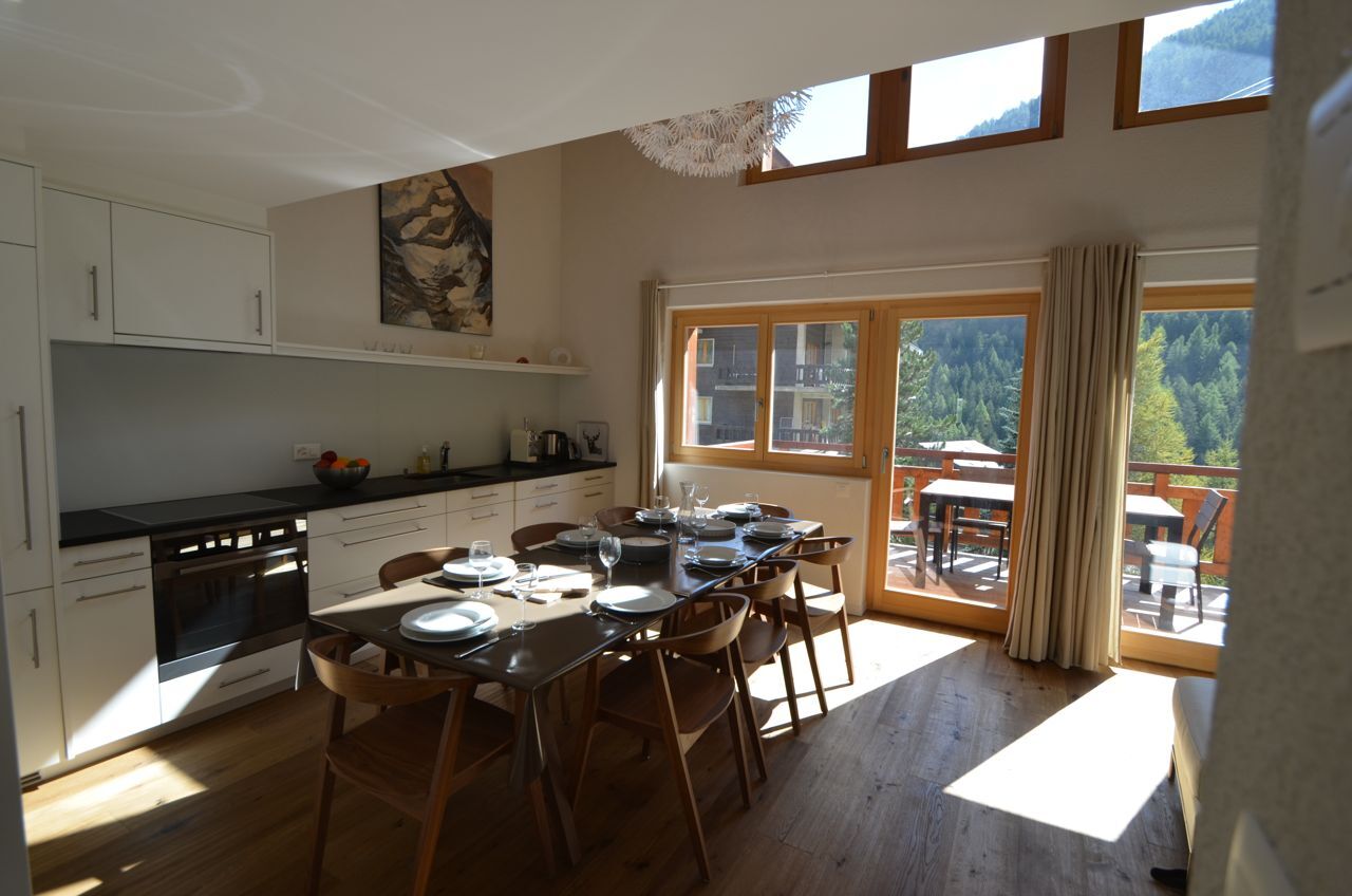 Appartement en duplex pour 10 personnes : 2 chambres doubles - 2 chambres avec 2 lits simples - 1 chambres avec lits superposés - 1 salle de bain avec baignoire - 1 salle de bain avec douche - WC - cuisine - lave-vaisselle - micro-onde - machine à café Nespresso - balcon - 2 places de parc dans un parking couvert - ski room dans l'immeuble - WiFi gratuit - non fumeurs - les animaux ne sont pas autorisés