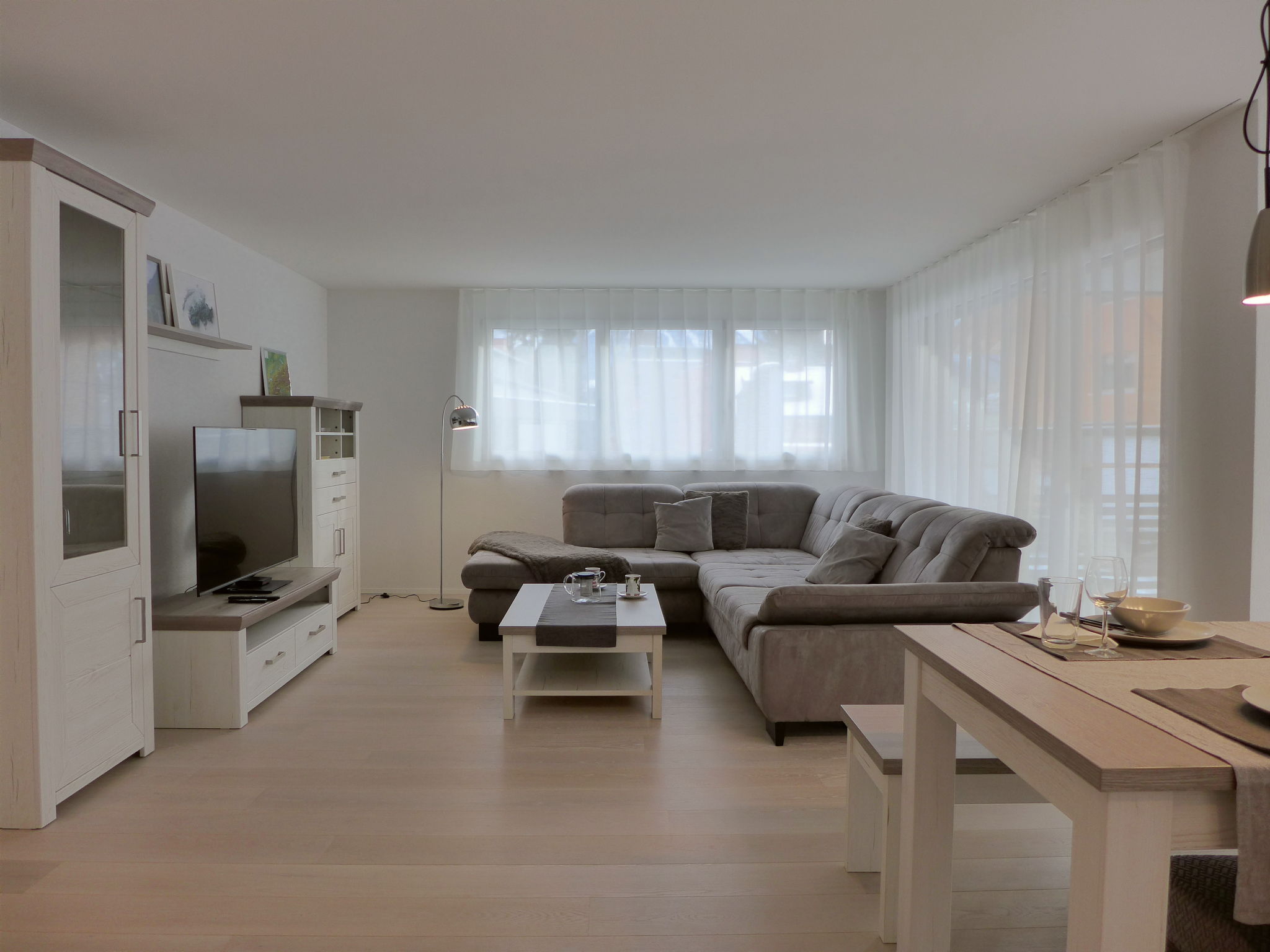 "Feldli", apt 3 pièces 86 m2 au 1er étage. Spacieux et clair, aménagement confortable et plaisant: séjour/salle à manger ouvert avec table pour les repas, TV, Télévision numérique et écran plat. Sortie sur le balcon. 1 chambre double avec 1 lit double (180 cm, longueur 200 cm). 1 chambre avec 2 lits (90 cm, longueur 200 cm), 1 couchage (90 cm, longueur 200 cm). Grande cuisine ouverte (four, lave-vaisselle, 4 plaques vitrocéramiques, grille-pain, bouilloire électrique, micro-ondes, cafetière électrique, Capsules pour machine à café (Nespresso) (NON INCLUSES)). Douche/WC. Chauffage par le sol. Grand balcon, situation sud. Mobilier de balcon. Très belle vue sur les montagnes et les alentours. A disposition: lave-linge, sèche-linge, sèche-cheveux. Internet (Connexion WIFI, gratuit). Place de parking (1 Voiture). Veuillez noter: adapté(e) aux familles. Logement non-fumeur.