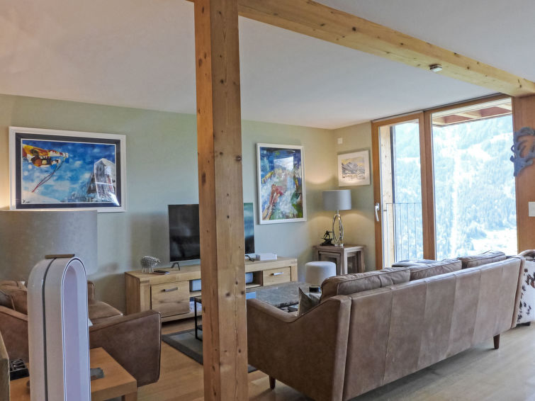 "Roossi Apt. 1", apt 4 pièces 100 m2 sur 2 niveaux. Spacieux et clair, aménagement moderne et de bon goût: séjour/salle à manger avec table pour les repas et TV (câblée). 1 chambre avec 1 lit double (1 x 180 cm, longueur 200 cm). Cuisine ouverte (four, lave-vaisselle, 4 plaques vitrocéramiques, grille-pain, bouilloire électrique, micro-ondes, cafetière électrique, Capsules pour machine à café (Nespresso) (NON INCLUSES), service à fondue (fondue au fromage)). À l'étage inférieur: 1 chambre avec 1 lit double (1 x 150 cm, longueur 200 cm). 1 chambre avec 2 lits (90 cm, longueur 200 cm). Douche/WC, bain/douche/WC. Terrasse. Meubles de terrasse. Très belle vue sur les montagnes. A disposition: lave-linge, sèche-linge, sèche-cheveux. Internet (Connexion WIFI, gratuit). Veuillez noter: logement non-fumeur.