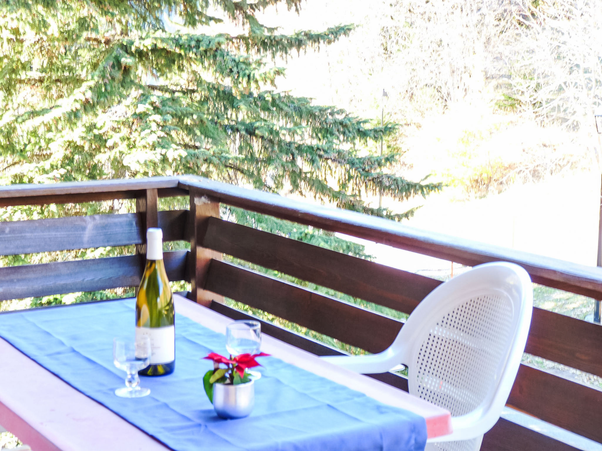 "Tourbillon A 27", apt 2 pièces 25 m2 au 2ème étage, situation nord. Aménagement fonctionnel: petit séjour/salle à manger avec 1 divan-lit, TV (câblée), écran plat et radio. Sortie sur le balcon. 1 chambre avec 2 lits (80 cm). Coin cuisine (2 plaques de cuisson, mini-four). Douche/WC. Balcon 10 m2. Belle vue sur les montagnes et la forêt. Place de parking. Veuillez noter: logement non-fumeur. Maximum 1 animal/ chien autorisé. Dans l'immeuble "Tourbillon A".