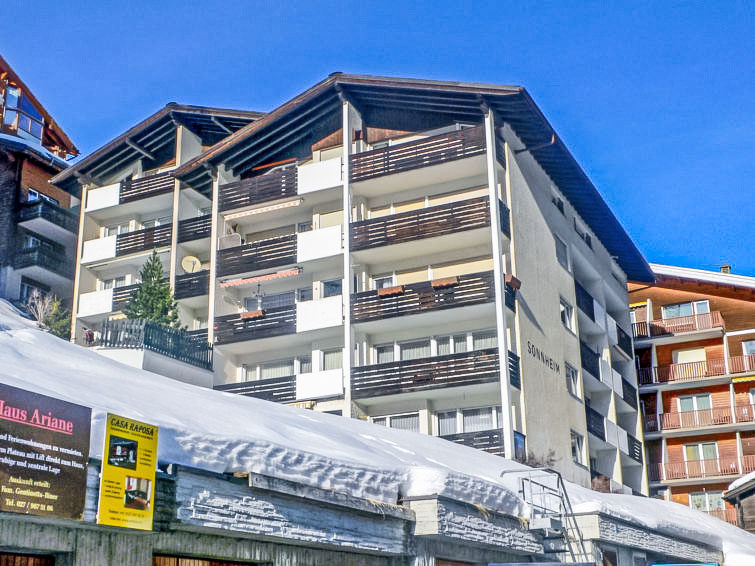 Grand immeuble simple "Sonnheim", de 5 étages. Dans le quartier de Zen Stecken, à 900 m du centre de Zermatt, situation tranquille, ensoleillée. Infrastructures de la Maison: ascenseur, local pour les skis, chauffage central. Supermarché 700 m, restaurant 30 m, boulangerie 500 m, centre à 10 minutes à pieds, arrêt de bus "Matterhorn Glacier Paradise" 200 m, gare ferroviaire "Bahnhof Zermatt" 900 m. Train de montagne 300 m, location de ski 300 m. Arrêt du ski-bus 200 m, école de ski, école de ski d'enfants 600 m. Accès direct à la maison impossible en taxi. La remise des clés a lieu à l’agence Interhome de Zermatt.