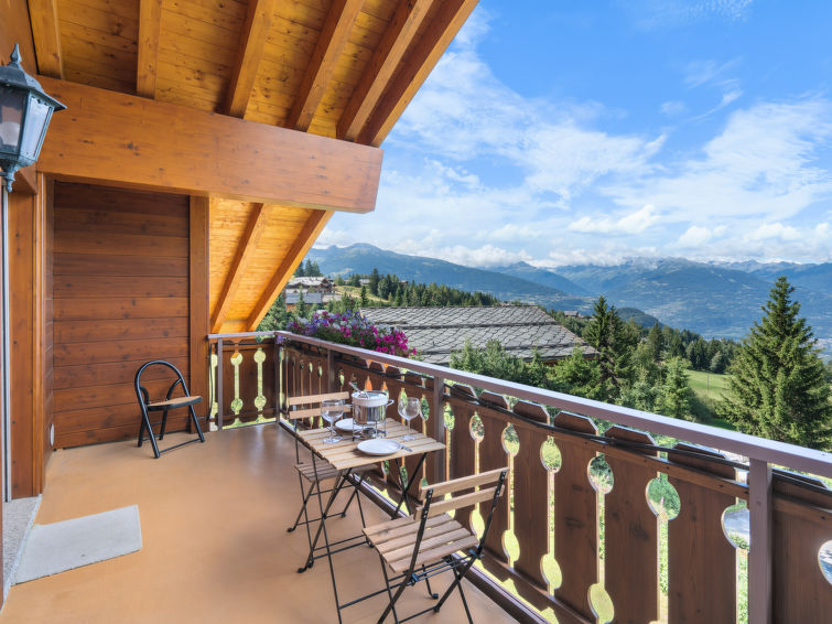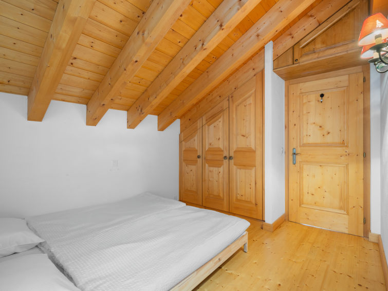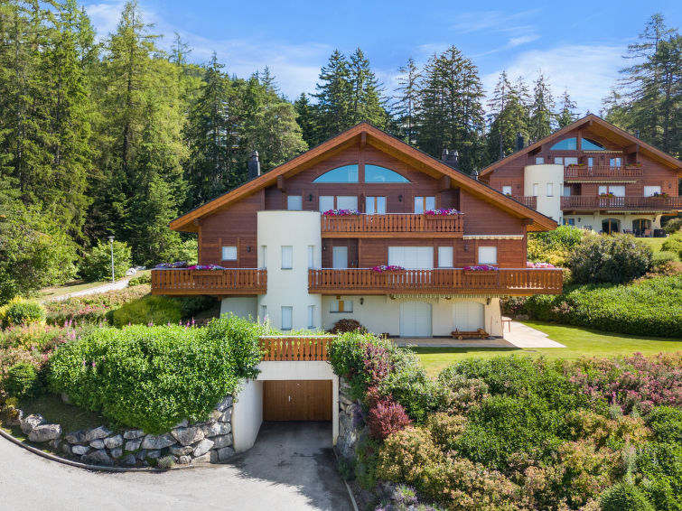 "L'Arboisier A 3", apt 3 pièces 70 m2, sous le toit. Spacieux, aménagement agréable et avec beaucoup de bois: grand séjour/salle à manger. Sortie sur le balcon. 1 chambre avec 1 grand-lit (160 cm, longueur 200 cm). Sortie sur le balcon, orientée nord. 1 chambre avec 2 lits (80 cm, longueur 200 cm). Sortie sur le balcon, orientée nord. Cuisine ouverte (four, lave-vaisselle, 4 plaques à induction, bouilloire électrique, micro-ondes, cafetière électrique, Capsules pour machine à café (Nespresso Vertuo) (NON INCLUSES), appareil à raclette, service à fondue (fondue chinoise, fondue au fromage)). Bain/bidet/WC, douche/WC. Balcon, situation sud-ouest. Superbe vue panoramique sur les montagnes, la vallée et la forêt. A disposition: lave-linge, sèche-cheveux. Internet (Connexion WIFI, gratuit). Place de parking (1 Voiture), garage No I (1 Voiture), hauteur 215 cm, largeur 300 cm. Veuillez noter: logement non-fumeur. 1 animal/ chien de petite taille autorisé.