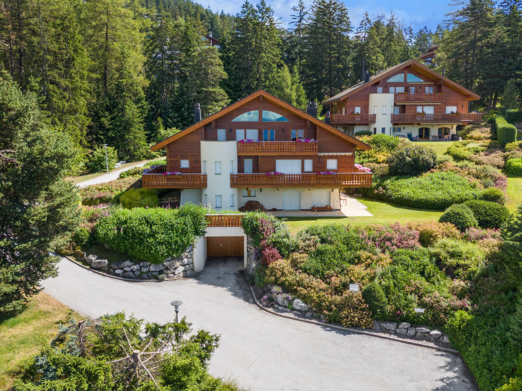 Belle petite résidence moderne, accueillante "L'Arboisier A/B", de 2 étages, année de construction 2003, environnée par les arbres. Dans le bas de la station de Crans, à 1.7 km du centre de Crans, situation tranquille, ensoleillée, zone avec peu de trafic, à 2.3 km du lac, à 2.1 km du domaine skiable, dans une impasse, dans la verdure, orientée sud-ouest. Infrastructures de la résidence: ascenseur, local pour les skis, chauffage central, lave-linge, sèche-linge (en commun, en sus). Place de parking, garage en commun. Magasins 1.7 km, supermarché 1.7 km, restaurant 900 m, boulangerie 1.7 km, arrêt de bus "Crans-Montana, Essampilles" 250 m, gare ferroviaire "Funiculaire Montana Gare" 3.6 km, plage de gazon "Lac Moubra" 4.2 km, baignade en lac "Lac Moubra" 4.2 km, lac Grenon 2.2 km. Terrain de golf (18 trous) 2 km. Les lacs connus sont facilement accessibles: Etang Long 2.2 km. Veuillez noter: ski-bus gratuit.