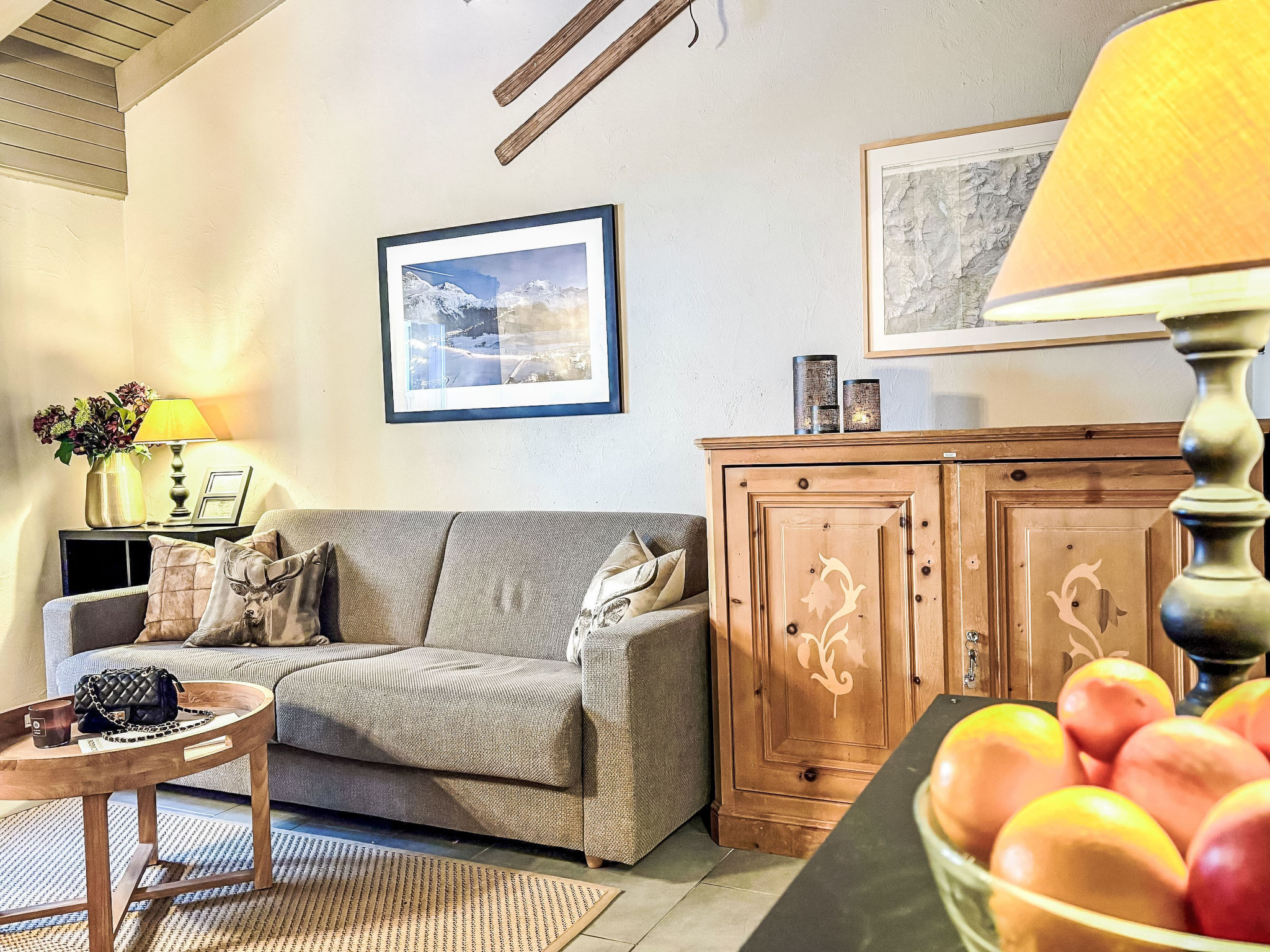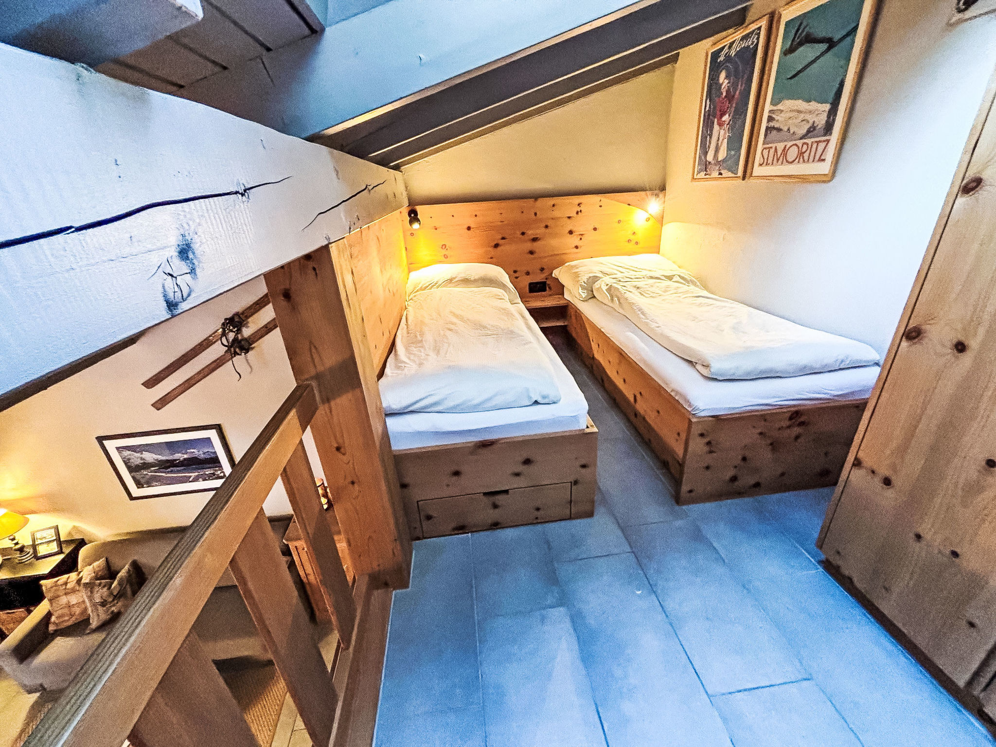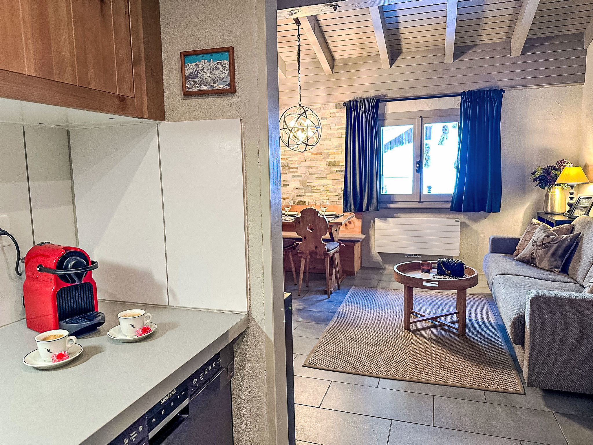 "Residenza Chesa Margun 24-1" studio 34 m2 sur 2 niveaux, situation nord. Rénové en 2024, aménagement confortable et agréable: séjour/salle à manger avec 1 divan-lit double (170 cm, longueur 200 cm), coin repas, TV (câblée), écran plat et radio. Cuisine dans l'entrée (4 plaques de cuisson, four, lave-vaisselle, 4 plaques vitrocéramiques, cafetière électrique, Capsules pour machine à café (Nespresso) (NON INCLUSES)). Douche/WC. À l'étage supérieur: galerie mansardée, ouverte avec fenêtre sous le toit avec 2 lits (80 cm, longueur 200 cm). A disposition: Internet (Connexion WIFI, gratuit). Veuillez noter: adapté(e) aux familles logement côté cour. Logement non-fumeur. Au lieu d'une chambre fermée, des espaces de couchage sont situés dans une zone ouverte (galerie, alcôve...).