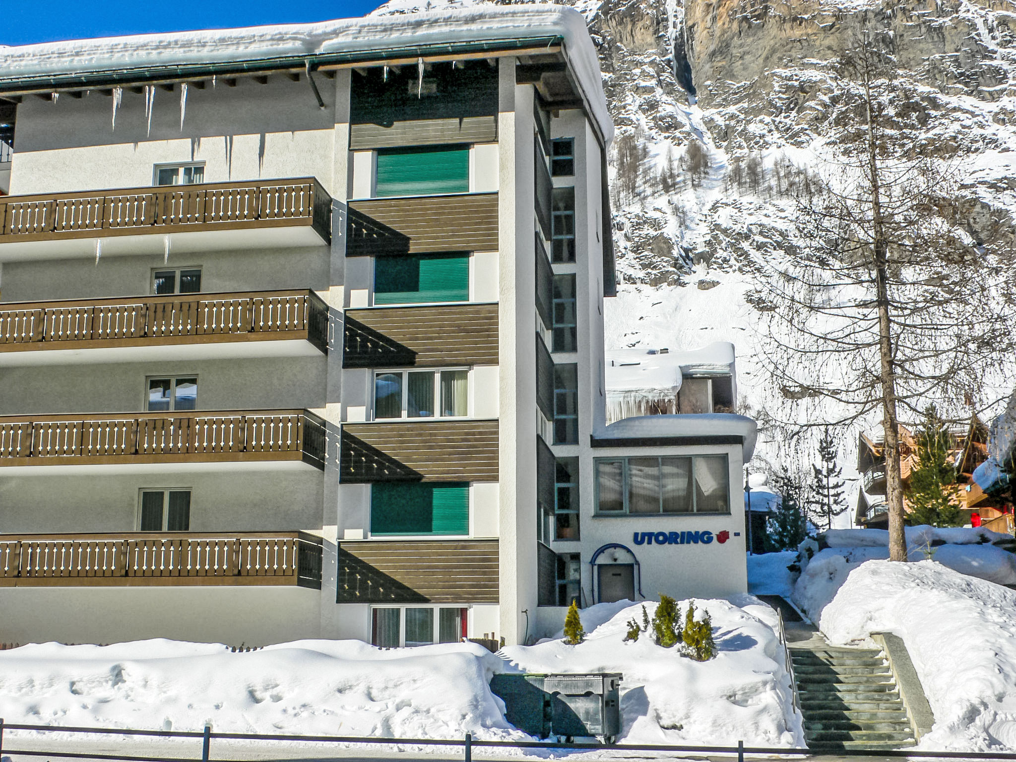 Petite résidence accueillante, simple "Matten (Utoring)". Dans le quartier d'untere MAtten, à 400 m du centre, situation centrale, tranquille, ensoleillée, orientée sud. Infrastructures de la Maison: réception, ascenseur, local pour les skis, chauffage central. Supermarché, restaurant 300 m, boulangerie, location de bicyclettes 400 m, centre à 7 minutes à pieds, arrêt de bus "Wiestibrücke" 20 m, gare ferroviaire "Bahnhof Zermatt" 400 m. Train de montagne 200 m, location de ski 30 m. Arrêt du ski-bus 10 m, école de ski, école de ski d'enfants 750 m. Veuillez noter: D’autres appartements sont également proposés à la location dans cette maison de vacances.