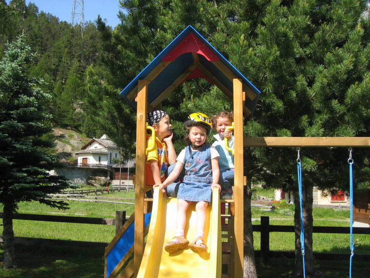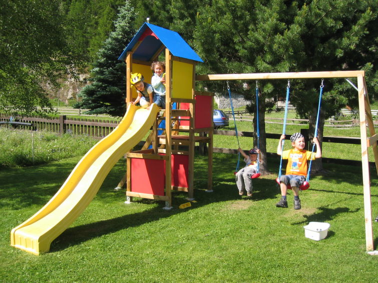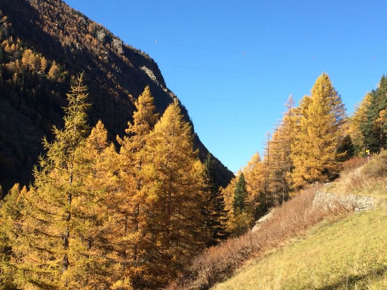 Belle petite résidence confortable "Alpenstern", 1'550 m au dessus du niveau de la mer, de 3 étages, année de construction 2006. Dans le quartier d'Unter den Bodmen, en bordure de la localité, à 2 km du centre de Saas Grund, situation tranquille, ensoleillée dans un quartier résidentiel, à 2 km du domaine skiable. En commun: jardin. Barbecue, espace de jeux pour les enfants. Infrastructures de la Maison: réduit pour bicyclettes, local pour les skis, chauffage central, lave-linge, sèche-linge (en commun, en sus). Accès en voiture jusqu'à la maison. En hiver, merci de prévoir des chaînes, en hiver 4x4 recommandé. Place de parking près de la maison. Magasins 2 km, magasin d'alimentation 2 km, restaurant, arrêt de bus 300 m, piscine couverte 4 km. Terrain de golf (9 trous) 4 km, tennis 2 km, train de montagne 1 km, télécabine 2 km, remontées mécaniques 2 km, pistes de ski 2 km. Arrêt du ski-bus 300 m, école de ski 2 km, piste de luge 2 km, ski de fond 300 m, patinoire 2 km. Les domaines skiables de renommée sont facilement accessibles: Hohsaas 2 km, Saas Fee 5 km, Saas Almagell 4 km.