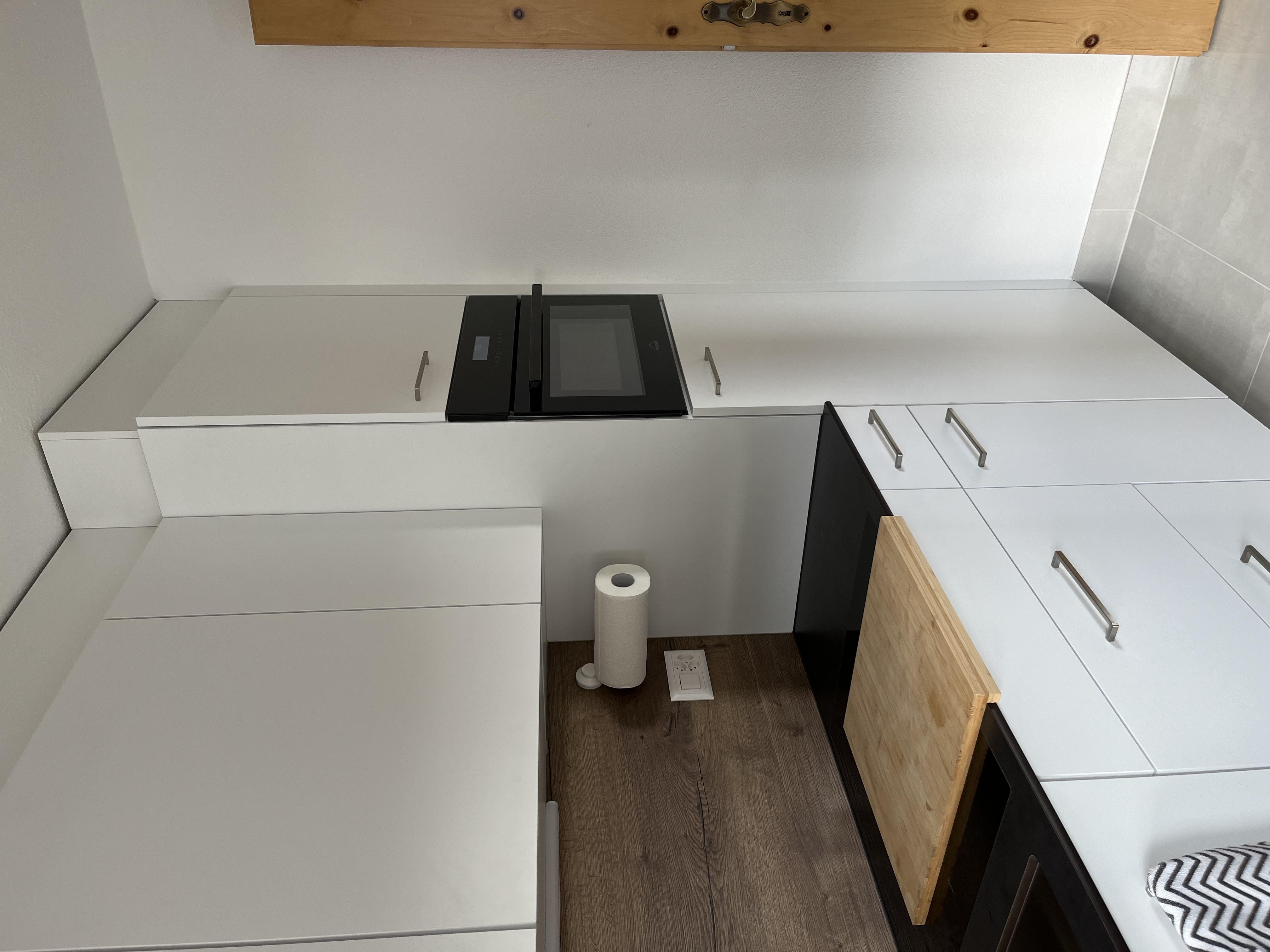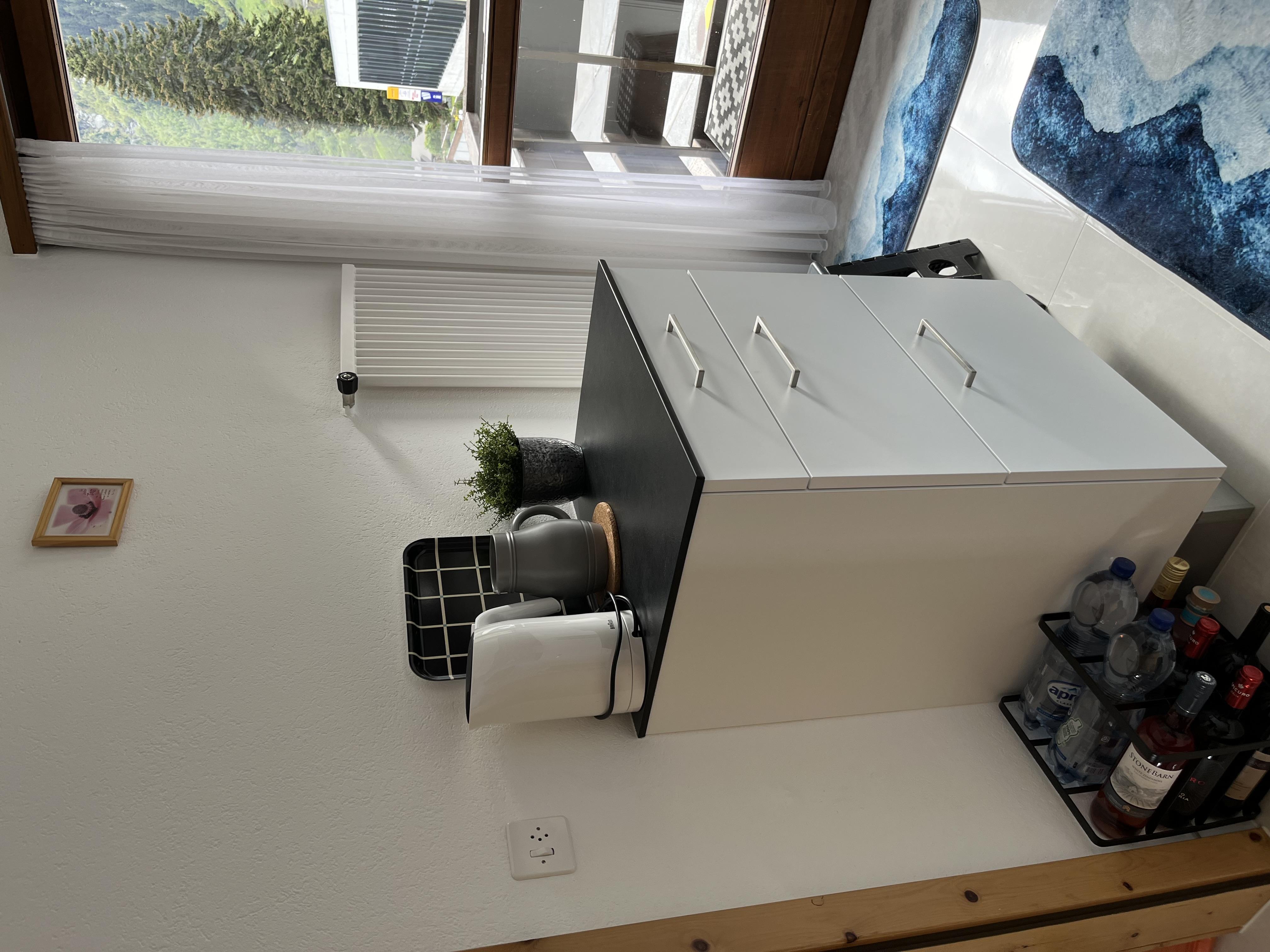 * Moderne Küche ausgestattet mit Kochherd/Backofen/Mikrowelle, Kühlschrank mit Gefrierfach, Spülmaschine, Delizio-Kaffeemaschine inkl. Kapseln, Fondue-Set, Raclette-Ofen/Tischgrill/Toaster, Gewürze, Öl/Essig, Tee, Sirup, Soda-Stream, Gschirri-Tabs, Abwaschmittel/Schwamm/Bürsteli