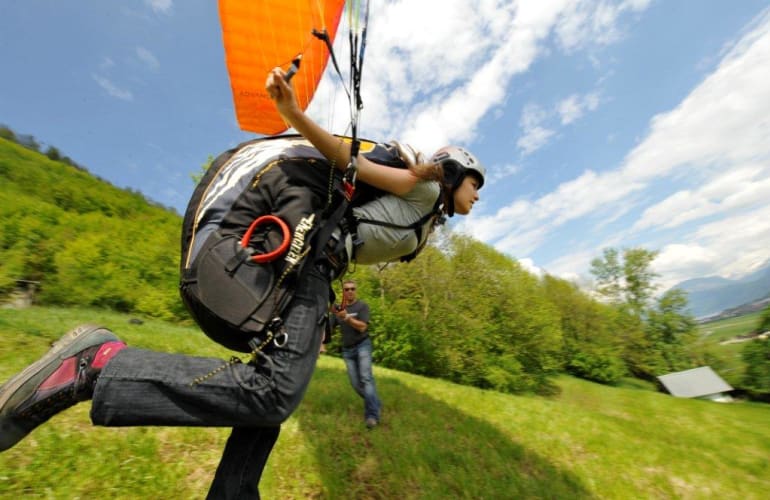 Il primo giorno, praticherai su una piccola pendenza come decollare e atterrare, e poi completerai già alcuni voli a un'altitudine sicura su una collina con una differenza di altitudine fino a 60 metri. Prova il tuo primo decollo!