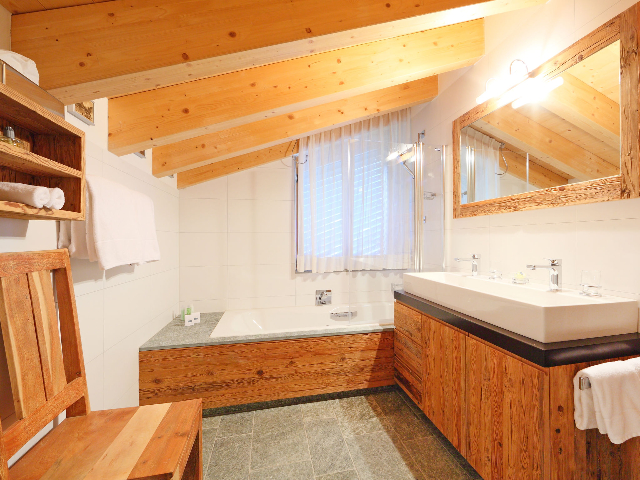 Chalet "Rütschi", piacevole, confortevole, lussuoso su 5 piani, costruito nel 2008. 7 appartamenti nella proprietà. Nella frazione Steinmatte, a 500 m dal centro, posizione tranquilla, esposizione sud. Nella casa: wifi, sauna, bagno turco, area wellness, ascensore, deposito biciclette, deposito sci, riscaldamento centralizzato. Negozio alimentare 100 m, supermercato 550 m, ristorante, panetteria 100 m, 8 minuti a piedi dal centro, fermata bus "Kirchbrücke" 100 m, stazione ferroviaria "Bahnhof Zermatt" 900 m. Funivia 700 m, noleggio sci 100 m, fermata ski bus 150 m, scuola di sci, scuola di sci per bambini 500 m. Prego notare: dotazioni per bimbi su richiesta. Ulteriori alloggi prenotabili.