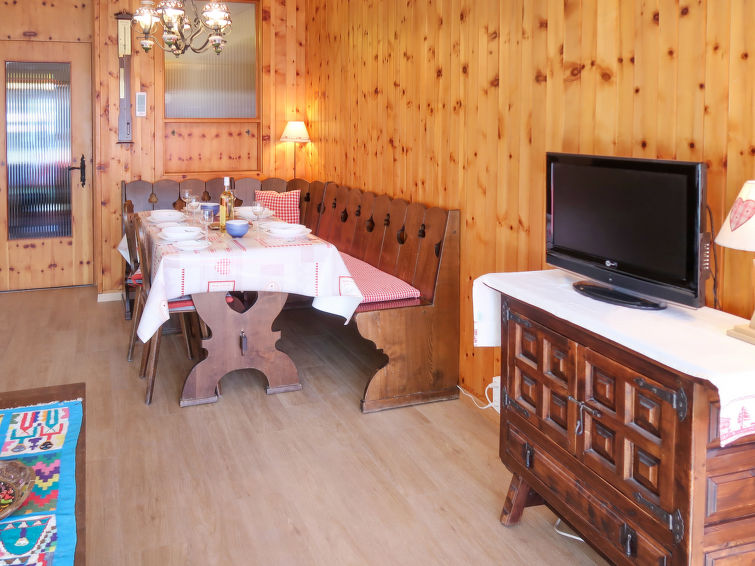 "Bouleaux E 1", apt. di 3 locali 57 m2 al 1. piano. Oggetto adatto a 2 adulti + 3 bambini. Arredamento funzionale: soggiorno/sala da pranzo con TV (via cavo). Uscita sul balcone, esposizione sud. 1 camera con 1 letto alla francese (140 cm, lunghezza 200 cm). Uscita sul balcone, esposizione nord. 1 camera per bambini con 1 letto (90 cm, lunghezza 200 cm), 1 x 2 letti a castello (90 cm, lunghezza 190 cm). Uscita sul balcone, esposizione nord. Cucina (3 punti cottura, forno, tostapane, bollitore elettrico, forno a microonde, set per raclette, set per fondue (formaggio)). Bagno, WC separato. Balcone, esposizione sud balcone, esposizione nord. Mobili da balcone. Vista sulle montagne e sulla località. A disposizione: Internet (wifi, gratis). Parcheggio nr. 7 Les Sorbiers. Prego notare: appartamento per non fumatori.