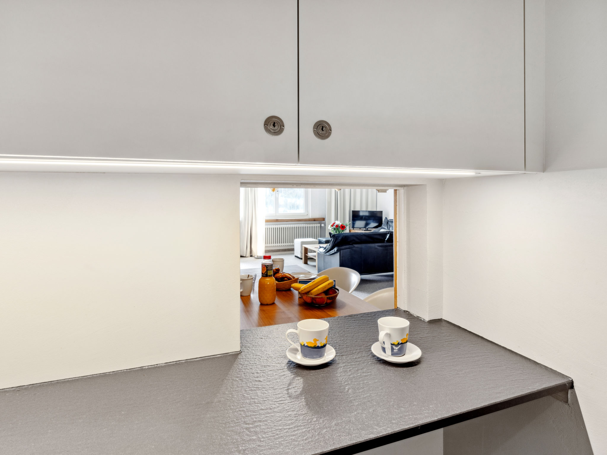 Davos: Condominio "Guardaval (Utoring)". Nella località, posizione centrale, tranquilla, soleggiata sul pendio, a 1 km dal lago, a 300 m dall'area sciistica. In comune: piscina coperta. Nella casa: reception, sala comune con TV, wifi, sauna (extra). Sala giochi, ascensore, deposito sci, riscaldamento centralizzato, lavatrice (in comune). Servizio consegna pane e servizio consegna bevande. Accesso stretta fino alla casa. Parcheggio (coperto, numero posti limitato, extra), autorimessa (extra). Negozio 300 m, ristorante 300 m, fermata bus, stazione ferroviaria "Davos Dorf" 400 m, piscina coperta 1 km, lago balneabile 1 km. Funivia, impianti di risalita, piste da sci, scuola di sci, pista per slitte 1.5 km, pista di fondo, pattinaggio 300 m. Rinomate località sciistiche: Parsenn 300 m, Jakobshorn 1.5 km. Questo edificio di appartamenti si trova vicino alla stazione ferroviaria della valle di Parsenn con magnifica vista. Posto auto (prenotazioni all'arrivo).