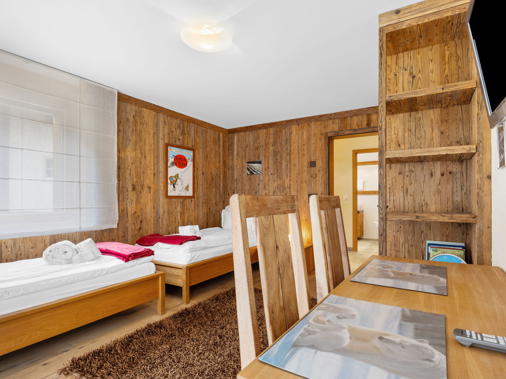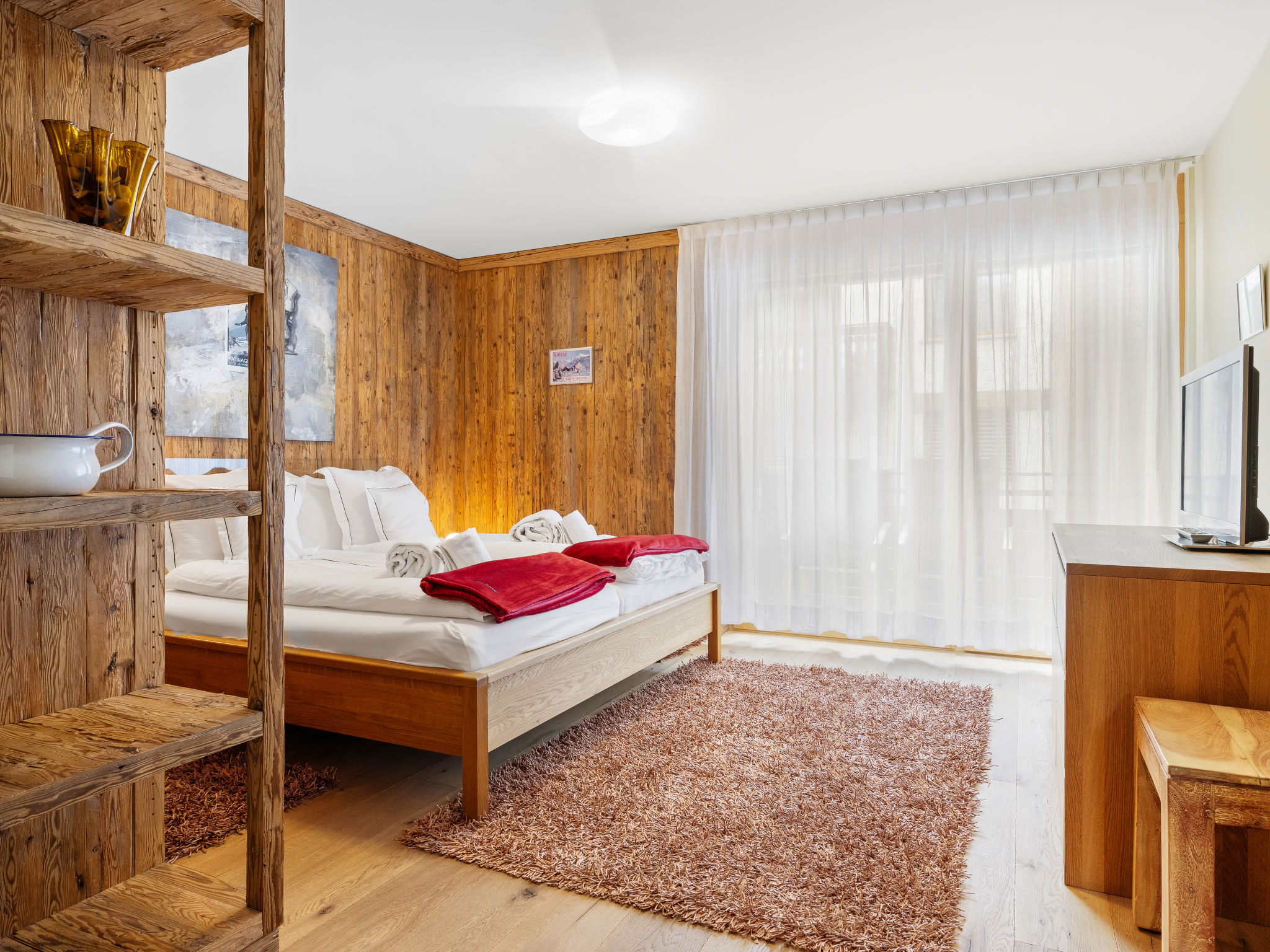 Apt. di 4 locali 123 m2 su 2 piani al 3. piano. Arredamento lussuoso e accogliente: 1 camera matrimoniale con 1 letto doppio e TV. Soggiorno/sala da pranzo con camino, tavolo da pranzo, TV, radio, CD e DVD. Uscita sul balcone, esposizione sud. Cucina aperta (forno, lavastoviglie, 4 piastre ad induzione, tostapane, bollitore elettrico, macchina da caffè elettrica, capsule per la macchina da caffè (Nespresso) extra, set per raclette, set per fondue (formaggio)). Vasca/WC, vasca idromassaggio. Piano inferiore: 1 camera matrimoniale con 1 letto doppio (180 cm, lunghezza 200 cm), TV. Uscita sul balcone, esposizione sud. 1 camera con 2 letti (90 cm, lunghezza 200 cm), TV. Vasca/WC, vasca idromassaggio. Balcone. Mobili da balcone. Bella vista sulle montagne. A disposizione: cassaforte, asciugacapelli. Internet (wifi, gratis). Prego notare: appartamento per non fumatori.