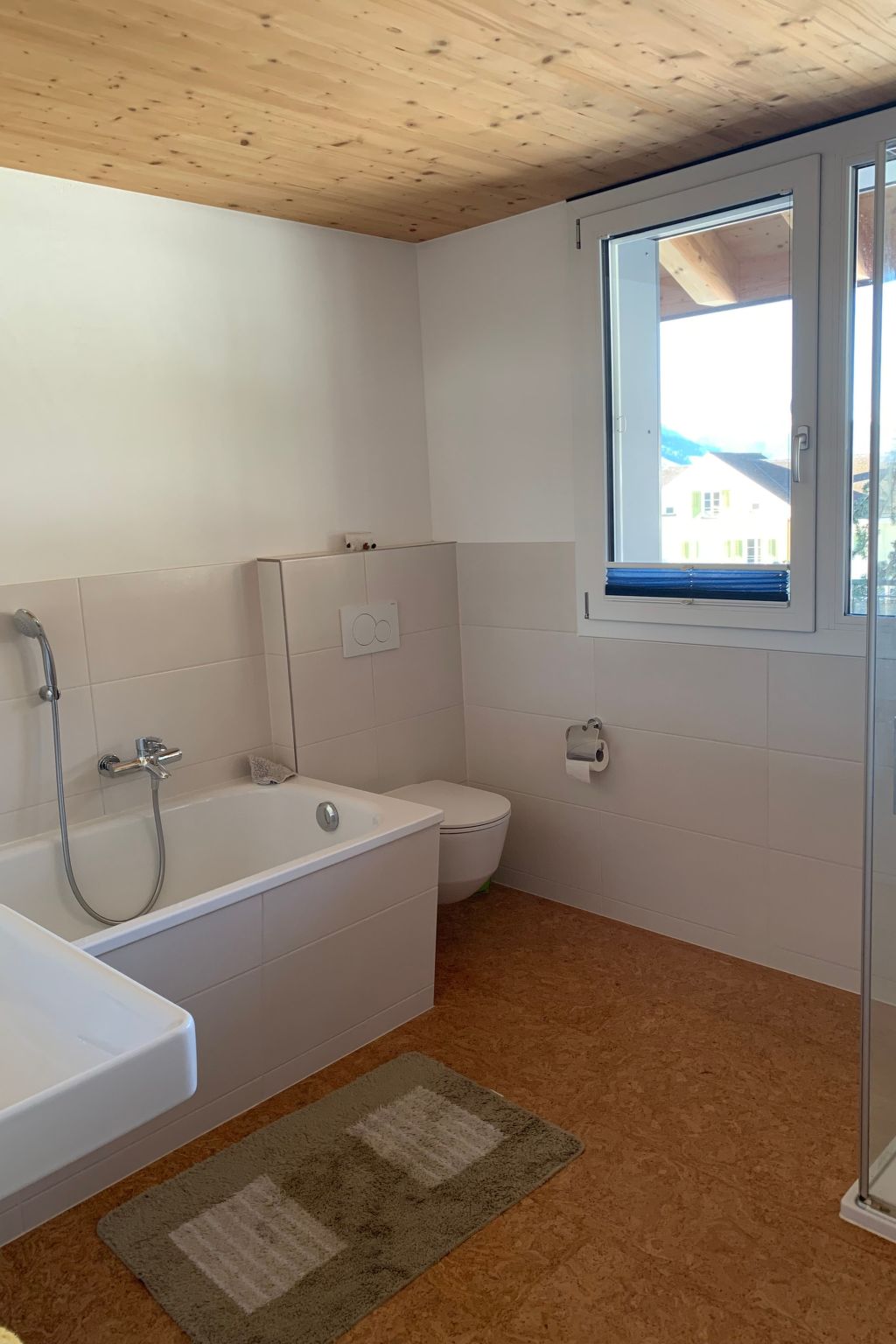 This attractive holiday flat in Wildhaus, Canton Sankt Gallen, can accommodate up to 10 people and is ideal for families or a group of friends. With five cosy bedrooms, a bathroom with shower and bathtub and three further WCs with washbasins, this holiday home promises a comfortable stay. Located on the first floor, it is easily accessible and is characterised by underfloor heating, which ensures cosy warmth in all areas. The fireplace provides entertainment and cosiness. The laundry facilities are for communal use in the building, which offers you flexibility during your stay. A special highlight is the terrace for exclusive use and a roof terrace, which invite you to linger outdoors. The garden, which is exclusively available to the guests of this flat, makes it possible to enjoy nature right on your doorstep.A charging station is available for guests travelling with an electric car. This emphasises the contemporary features of the flat. Although pets are not allowed, the surrounding area offers numerous leisure activities. With a beach and a lake just 300 metres away, as well as the proximity to ski slopes and mountain/cable cars 2500 metres away, a variety of activities is guaranteed. A ski bus just 10 metres away also provides easy access to more distant skiing and hiking areas.The nearest village centre and shopping facilities are 1500m away, guaranteeing both peace and quiet and access to local amenities. The holiday flat is therefore the perfect starting point for discovering the beauty of Wildhaus and the surrounding region without having to compromise on comfort and convenience.