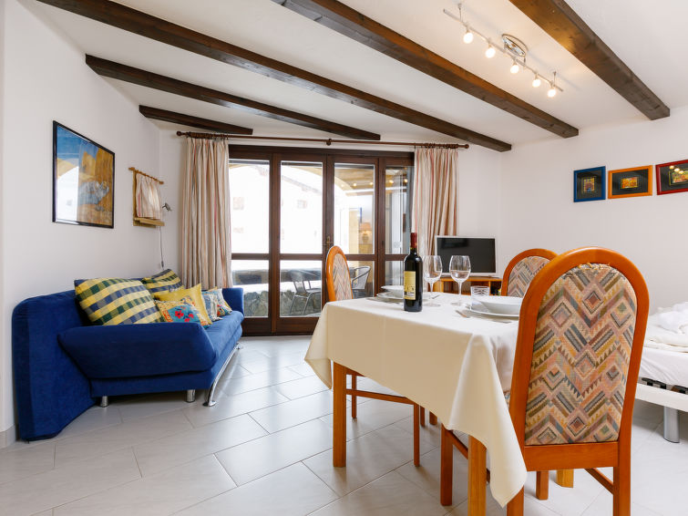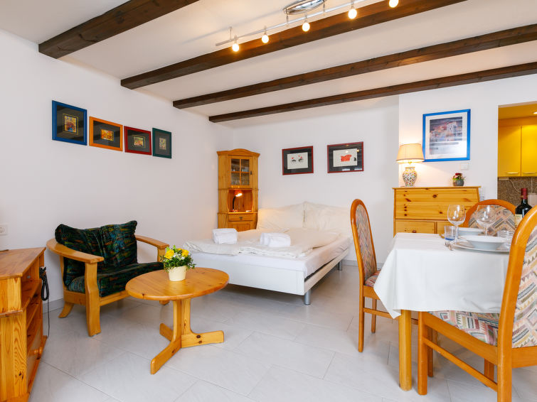 "Residenza Chesa Margun 33-5" monolocale 30 m2. In parte restaurato, arredamento accogliente: soggiorno/camera con 1 letto alla francese (160 cm, lunghezza 190 cm), tavolo da pranzo, TV e TV (satellite) (schermo piatto), radio. Uscita sulla terrazza. Angolo cottura (forno, lavastoviglie). Vasca/WC. Piccolo balcone, esposizione sud. Mobili da terrazza. Bella vista sulla valle e sulla località. A disposizione: telefono. Internet (wifi). Garage. Prego notare: appartamento per non fumatori.