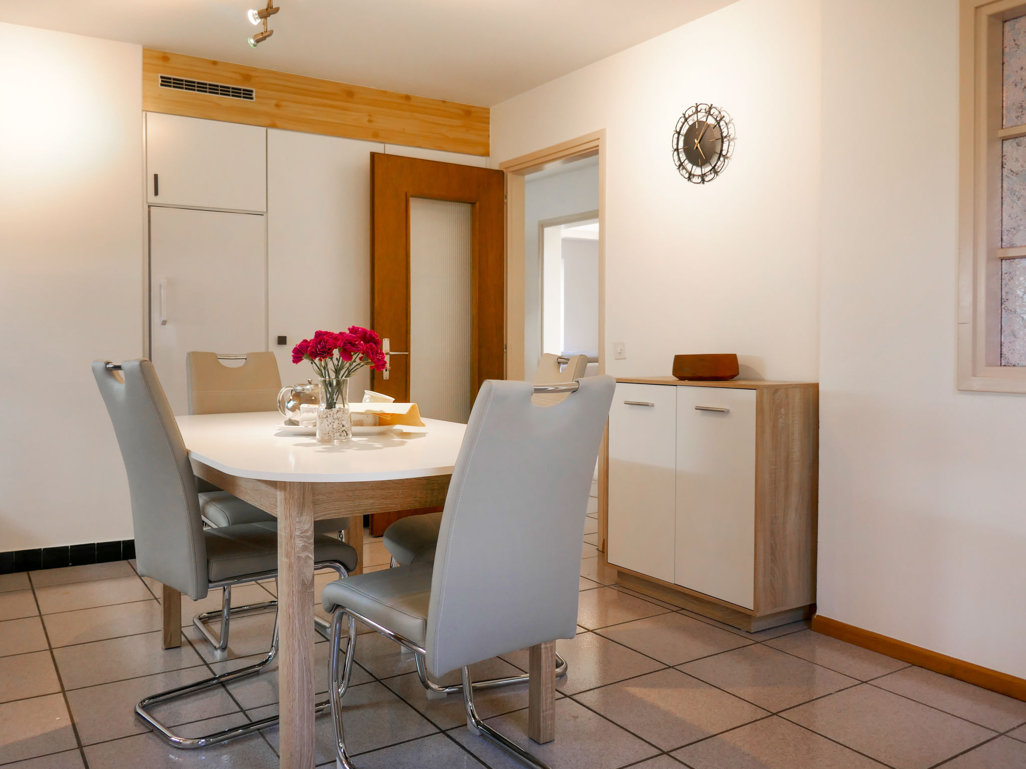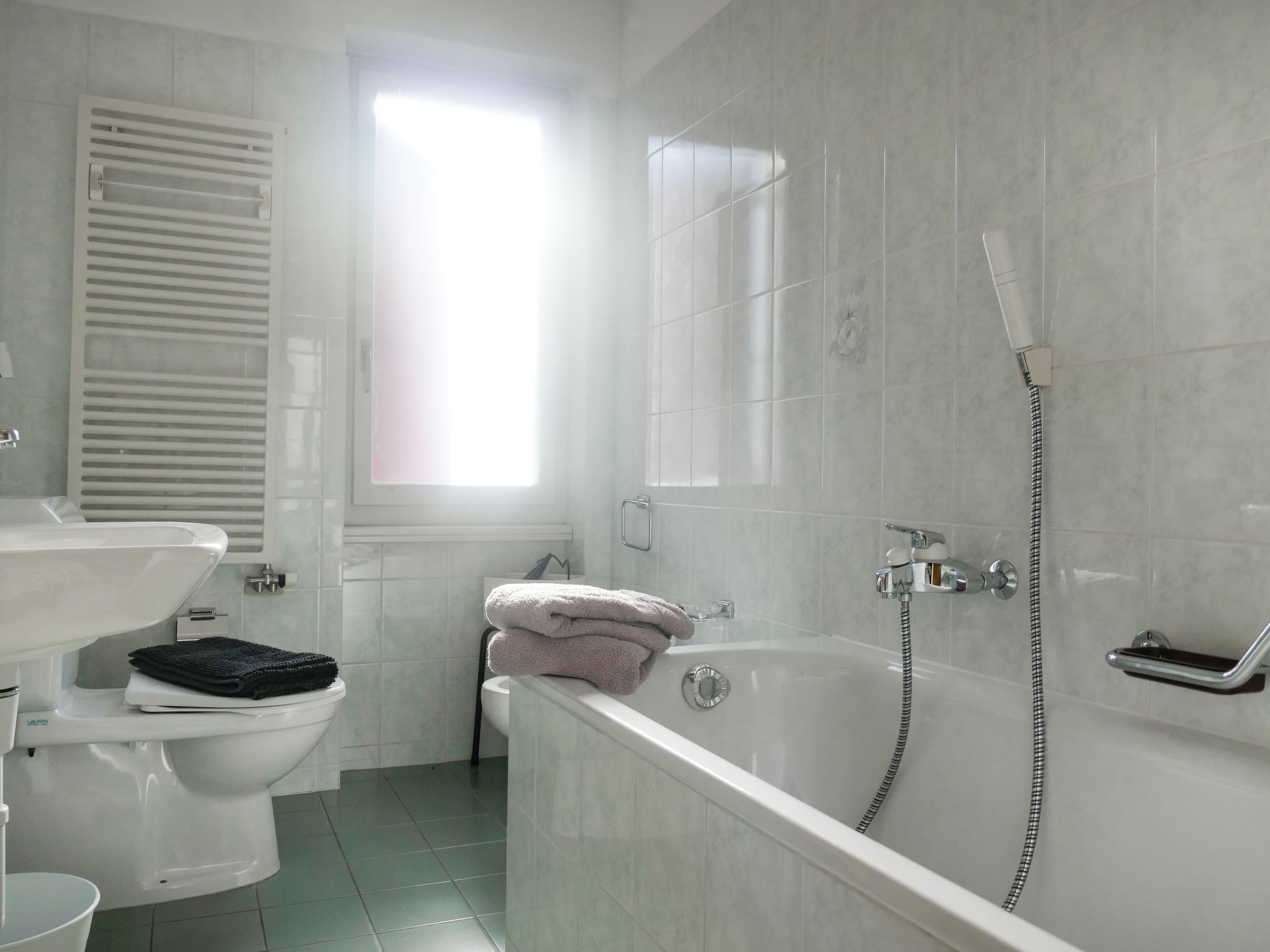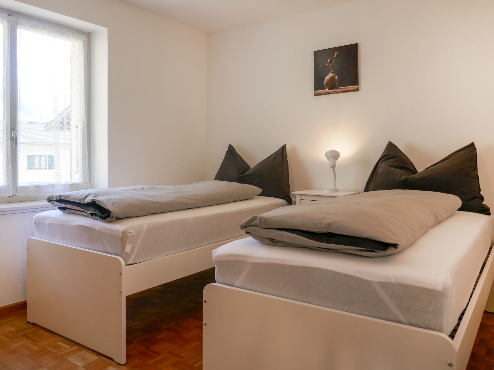 "Terry", apt. di 4 locali 90 m2 al 1. piano. Spazioso e luminoso, arredamento funzionale e confortevole: soggiorno aperto con TV (satellite). Uscita sul balcone. 1 camera matrimoniale con 1 letto doppio (1 x 160 cm, lunghezza 200 cm), doccia/WC. 1 camera con 2 letti (90 cm, lunghezza 200 cm). 1 camera con 1 letto (90 cm, lunghezza 200 cm). Cucina (4 piastre cottura in vetroceramica, tostapane, bollitore elettrico, congelatore, macchina da caffè elettrica, capsule per la macchina da caffè (Nespresso) extra, set per raclette). Uscita sulla terrazza. Vasca/WC. Riscaldamento elettrico. Terrazza. Mobili da terrazza, barbecue (portatile), sedie a sdraio (2). Bella vista sulle montagne e sul paesaggio. A disposizione: seggiolone, lettino per bimbi fino 2 anni (extra), asciugacapelli. Internet (wifi, gratis). Prego notare: appartamento per non fumatori. Massimo 1 animale/cane consentito. NL-00006981