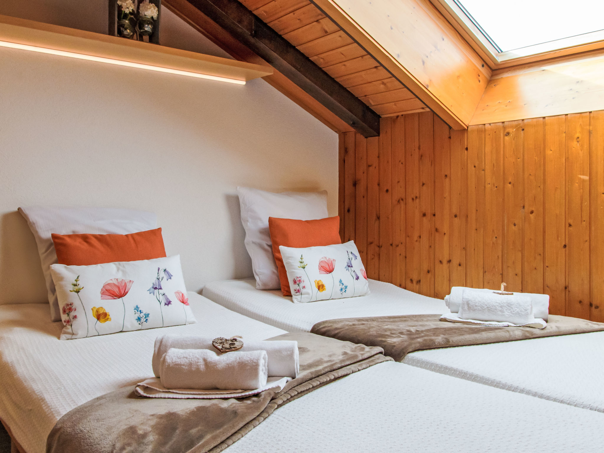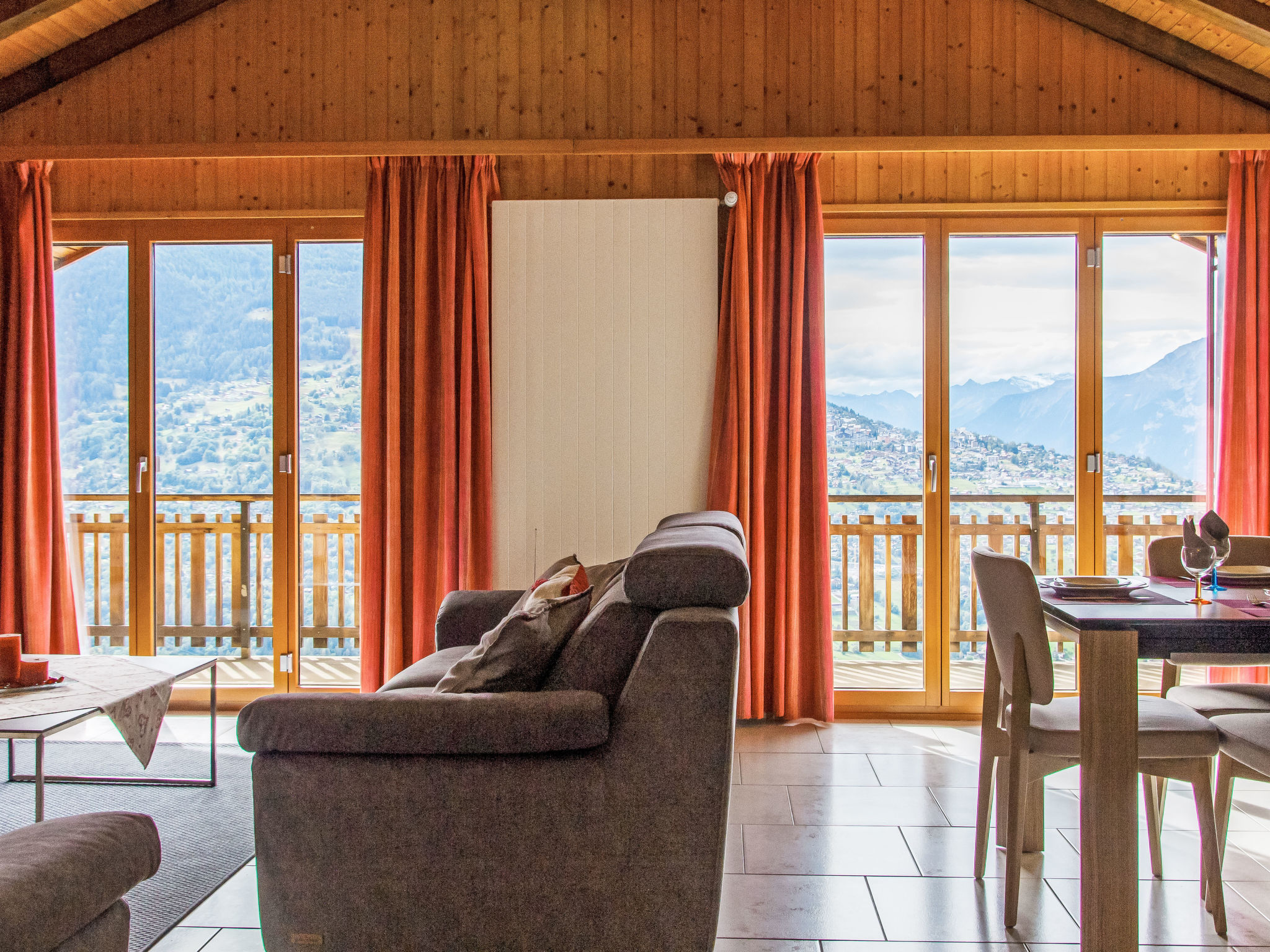"Beau Soleil - Gentianes 40", apt. di 5 locali 125 m2 al 3. piano. Spazioso, in parte restaurato, arredamento confortevole e di buon gusto: ingresso. Soggiorno/sala da pranzo con TV (via cavo) e CD. Uscita sul balcone. 3 camere, ogni camera con 2 letti (90 cm, lunghezza 190 cm). 1 camera con 2 letti (90 cm, lunghezza 200 cm). Cucina aperta (forno, lavastoviglie, 4 piastre cottura in vetroceramica, tostapane, bollitore elettrico, forno a microonde, congelatore, macchina da caffè elettrica, capsule per la macchina da caffè (Senseo) extra, set per raclette, set per fondue (formaggio)). Vasca/WC, doccia/WC. 2 balconi, esposizione ovest e esposizione sud-est, piccola terrazza. Mobili da balcone. Splendida vista sulle montagne e sulla valle. A disposizione: Internet (wifi, gratis). Prego notare: appartamento per non fumatori, senza parcheggio.