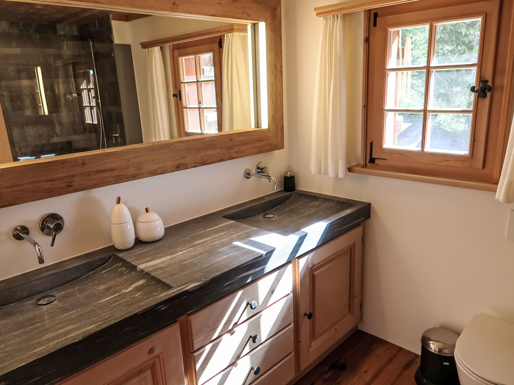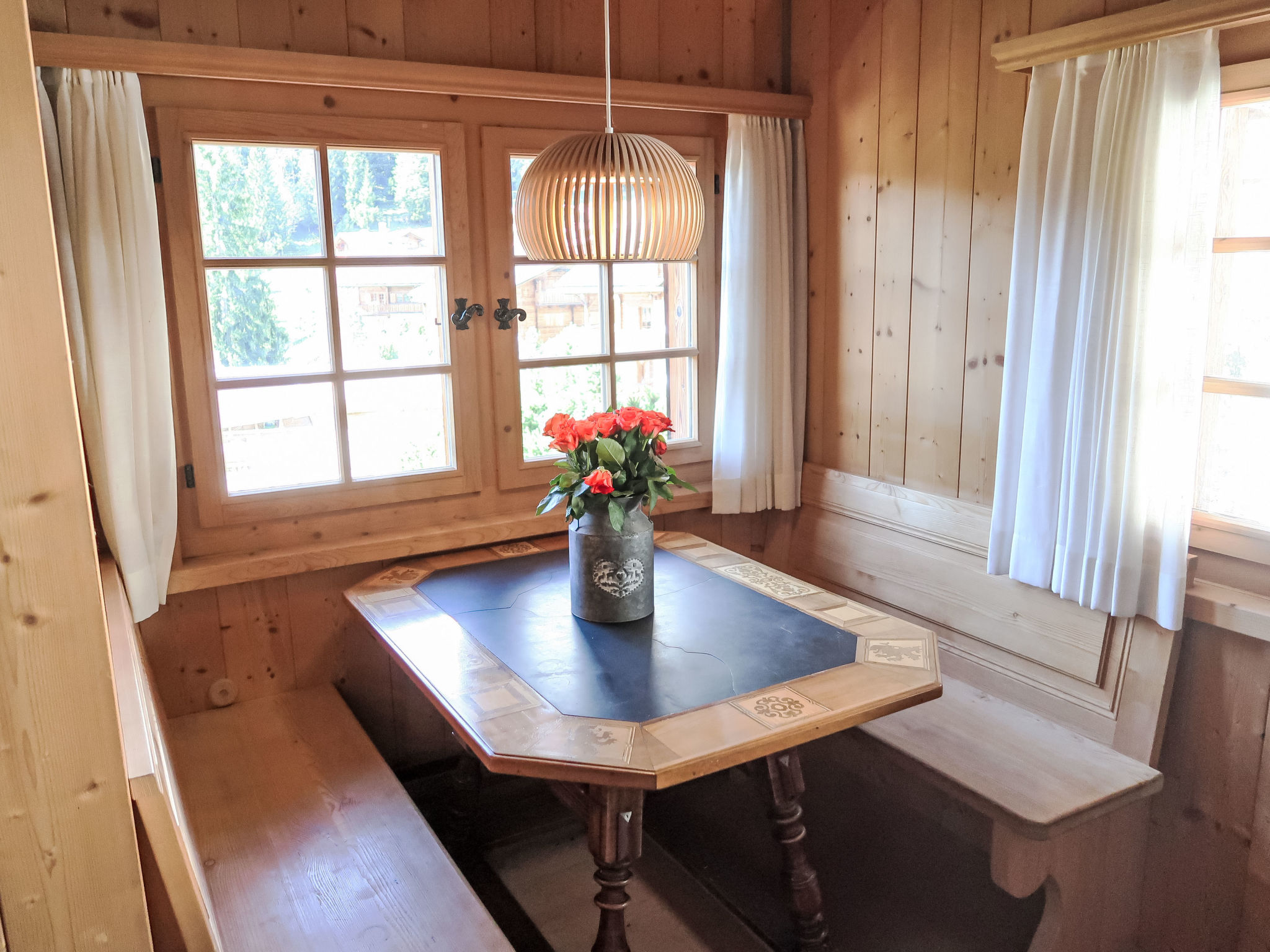 Apt. di 4 locali 150 m2 su 2 piani. Arredamento confortevole e accogliente: soggiorno/sala da pranzo con camino (solo con funzione decorativa). Uscita sul balcone. 1 camera matrimoniale con doccia/WC. Grande cucina aperta (forno, lavastoviglie, 4 piastre cottura in vetroceramica, tostapane, bollitore elettrico, congelatore, macchina da caffè elettrica, set per raclette, set per fondue (formaggio)). WC separato. Piano superiore: soppalco. 1 camera matrimoniale con doccia/WC. 1 camera con 1 letto e 1 x 2 letti a castello, doccia/WC. Balcone 25 m2, esposizione sud, patio 40 m2. Mobili da terrazza, mobili da balcone, sedie a sdraio (2). Bella vista sulle montagne, sul paesaggio e sulla località. A disposizione: lavatrice, asciugatrice. Internet (wifi, gratis). Parcheggio, garage (2 Auto) vicino alla casa, altezza 190 cm. Prego notare: appartamento per non fumatori.
