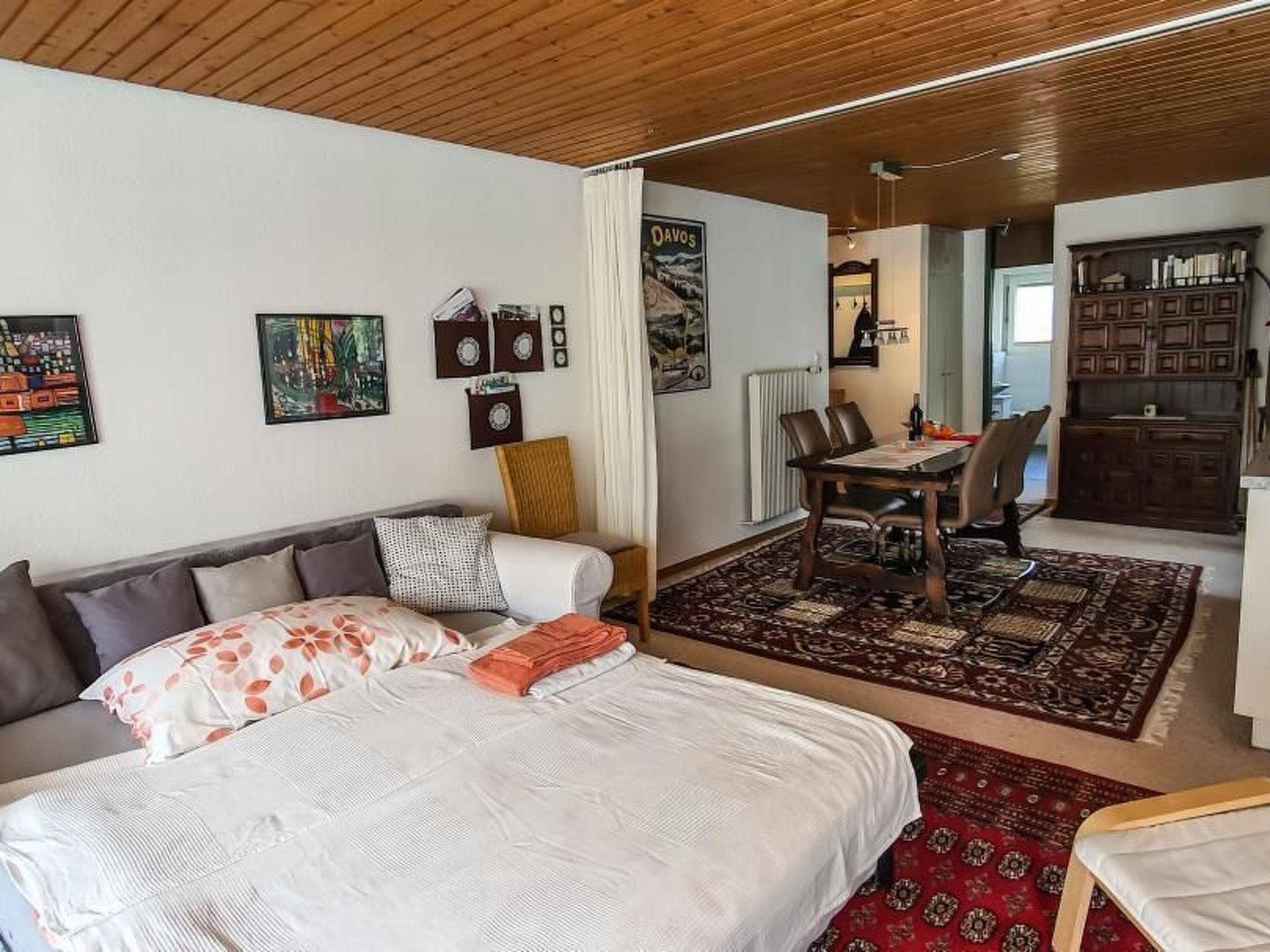 You can spend time with your loved ones in this family-friendly accommodation. The Bünda ski lift and the cross-country ski trail are just 200m from the flat, ideal for winter holidays with the whole family. The Parsenn valley station can be reached on foot in 10 minutes and the lake is also nearby. Perfect for holidays in all seasons. End a day's skiing in the cosy living room and relax by the open fire. The flat is cosily furnished and child-friendly. The accommodation can be entered independently, the key is deposited in a key safe. The code will be announced before arrival. Please return the key on departure. Pets are allowed, a washing machine can be used in the common laundry room for a fee. The flat has 3.5 rooms, a bathroom with WC/shower and a separate WC. One bedroom with double bed, one bedroom with 3 beds suitable for children or adults and a sofa bed in the living room.Other living room equipment (living room 1): For 6 guests, the sofa bed in the living room can be pulled out and used.Sports facilities in the area: mountaineering, ice skating, climbing, mountain biking, cycling tours, skiing (alpine), skiing (cross-country), sports centre, squash, surfing, tennis, sailing. 10010