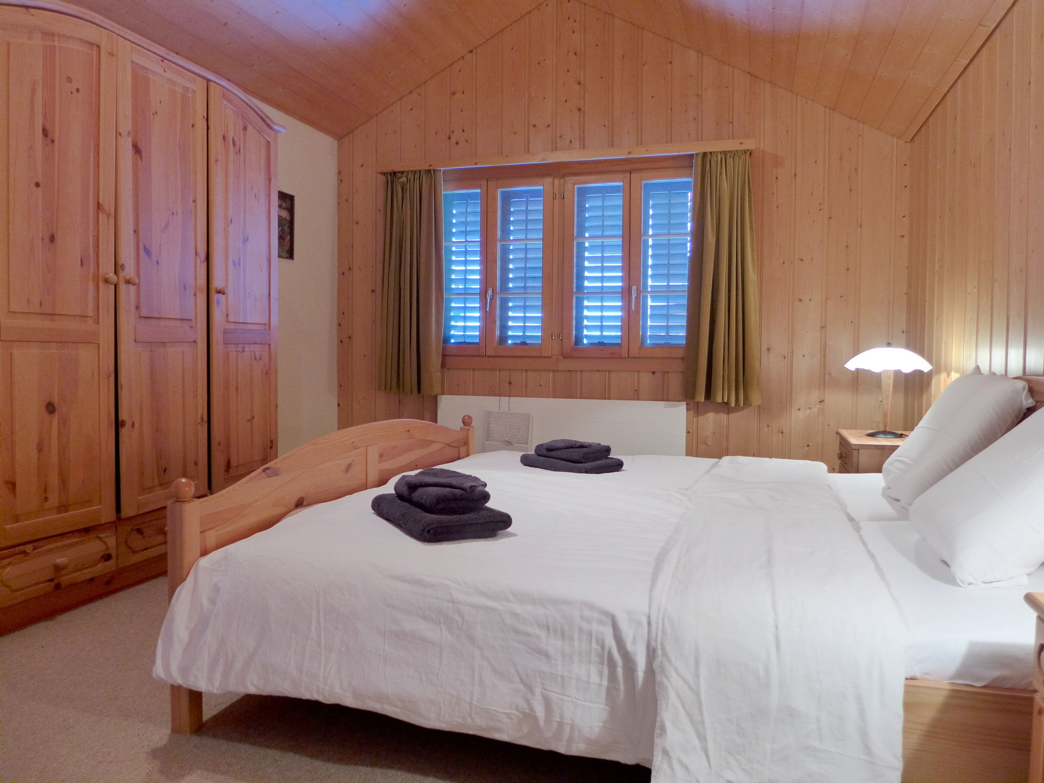 Apt. di 4 locali 122 m2, al piano sottotetto, esposizione sud. Spazioso e luminoso, in parte mansardato, arredamento rustico e accogliente: soggiorno grande, aperto con stufa svedese, TV (via cavo) e schermo piatto. Uscita sul balcone. 1 camera grande con 1 letto doppio (2 x 90 cm, lunghezza 200 cm). 1 camera con 2 letti (90 cm, lunghezza 200 cm). 1 camera per bambini con 1 x 2 letti a castello (90 cm, lunghezza 200 cm). Grande cucina 12 m2 (forno, lavastoviglie, 4 piastre cottura in vetroceramica, tostapane, bollitore elettrico, forno a microonde, macchina da caffè elettrica, capsule per la macchina da caffè (Nespresso) extra, set per raclette, set per fondue (formaggio)) con tavolo da pranzo. Vasca/WC, WC separato. Balcone 10 m2, esposizione sud. Mobili da balcone. Magnifica vista panoramica sul lago, sulle montagne e sul paesaggio. A disposizione: seggiolone, lettino per bimbi fino 3 anni, asciugacapelli. Internet (wifi). Parcheggio (coperto, 1 Auto). Prego notare: adatto alle famiglie. Appartamento per non fumatori. Massimo 1 animale/cane consentito. Allarme antifumo, estintore, no ascensore.