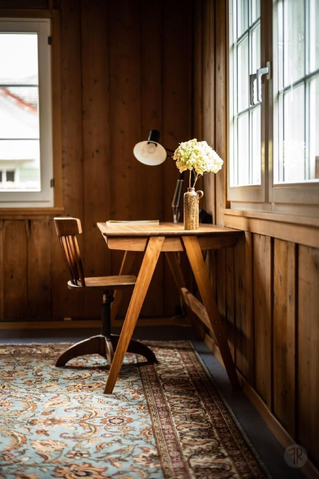 Discover the heart of picturesque Toggenburg in our cosily furnished 6-room flat on the 1st floor of our 200-year-old wooden house, which immediately puts you in a holiday mood. The combination of historical charm and the central location in Ebnat-Kappel, embedded in a street steeped in history, makes our place the perfect starting point for journeys of discovery or a relaxing retreat for families and long-term guests.Inside the spacious flat, you will find well thought-out furnishings that leave nothing to be desired. From comfortable beds with cosy cotton bed linen in the two bedrooms to an inviting living room with tiled stove, wing chair and projector for film evenings to a quiet office with workstation - you will find everything you need for relaxing days and productive hours. Two bathrooms, equipped with modern shower cubicles and a double washbasin, as well as a fully equipped kitchen round off the offer.The outdoor area invites you to relax and linger in a natural garden with terraces and fruit trees. In the summer months, the nearby Thur offers perfect conditions for barbecues and swimming. For your own equipment, be it bicycles or winter sports equipment, there are easy storage options on request.The area around Ebnat-Kappel is a paradise for active holidaymakers and nature lovers. With its variety of landscapes, from the idyllic Thurweg to the majestic peaks of Säntis and Churfirsten, Toggenburg offers countless opportunities for hiking, biking, skiing and much more. The proximity to cultural highlights such as the St.Gallen Abbey District or the various themed trails makes every discovery tour an unforgettable experience.Treat yourself to a stay in our holiday flat and experience how history and modern comfort create an inviting atmosphere in which everyone feels welcome and at home. We look forward to providing you with an unforgettable stay, full of relaxation, nature experiences and cultural discoveries. Steinfelsstrasse