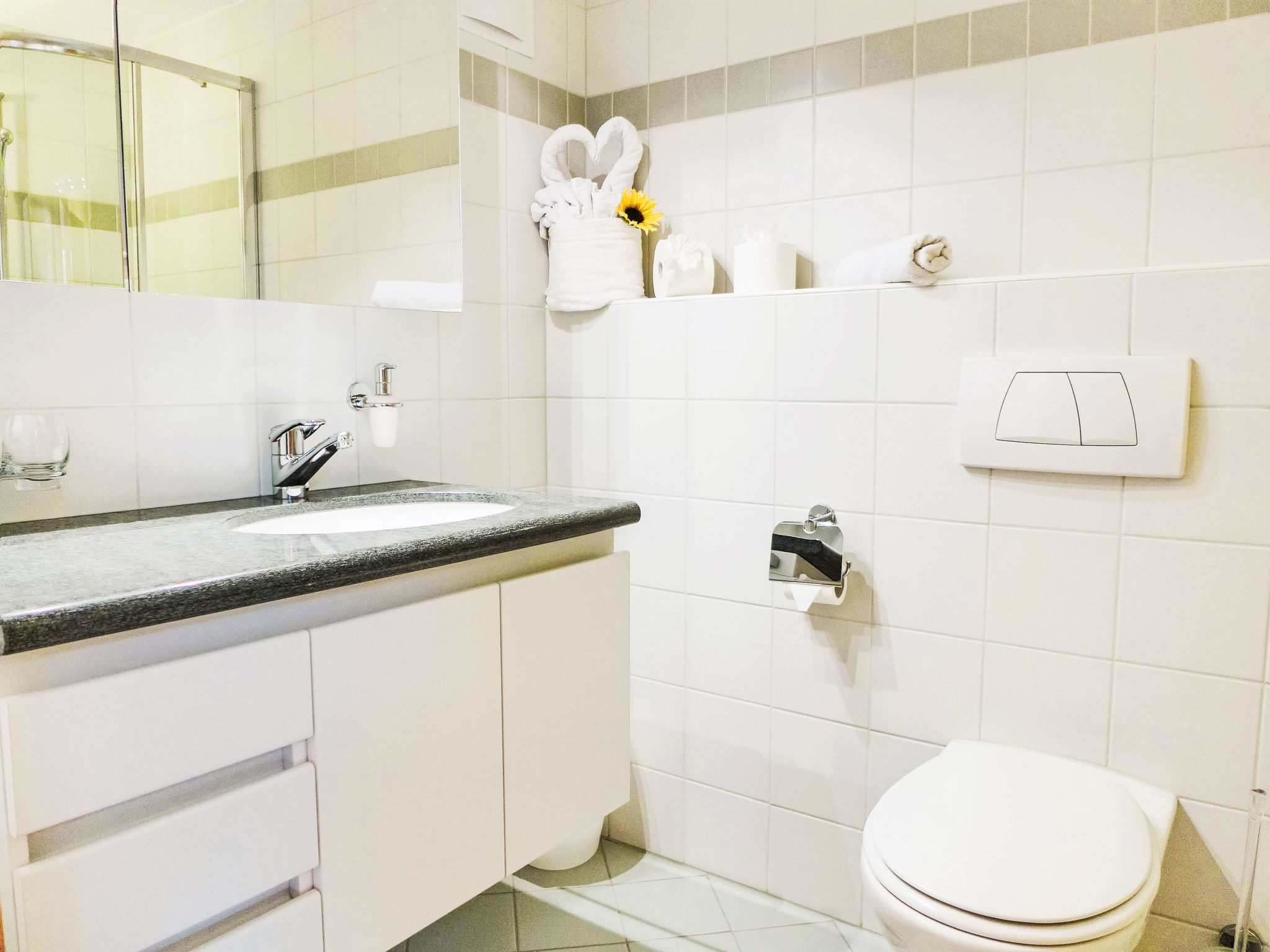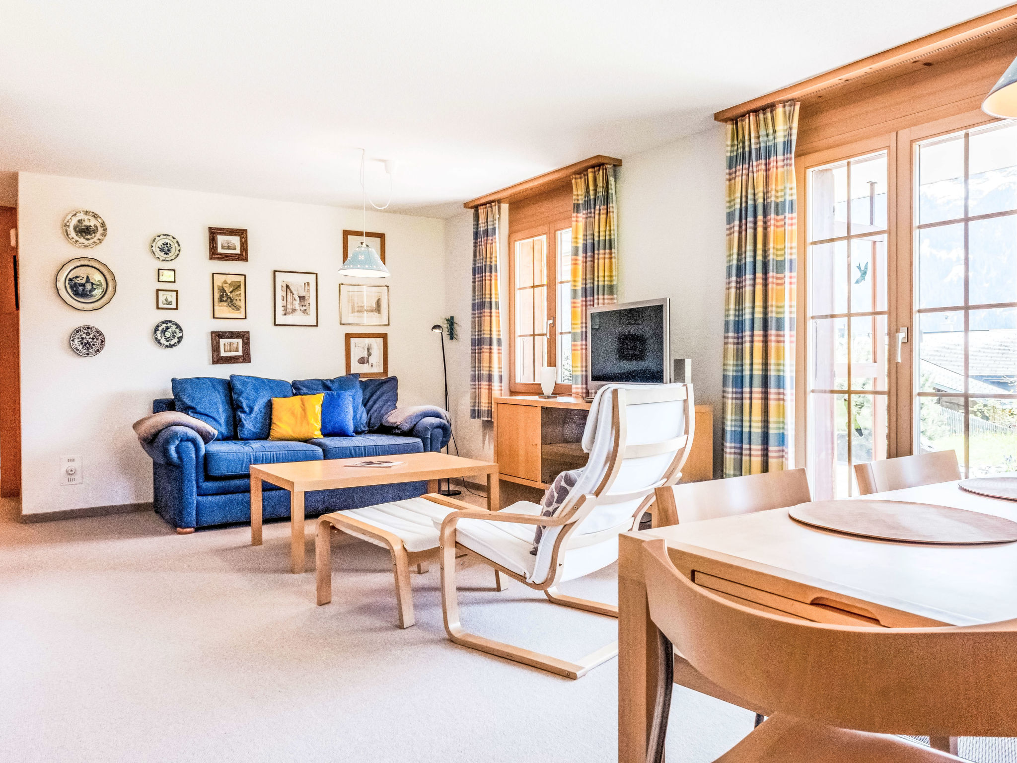 Apt. di 3 locali 91 m2, al pianterreno, esposizione sud. Spazioso e luminoso, arredamento molto di buon gusto e accogliente: soggiorno/sala da pranzo aperto con finestra panoramica con angolo pranzo, TV (via cavo) e schermo piatto. Uscita sulla terrazza, esposizione sud. 1 camera grande con 1 letto doppio (2 x 80 cm, lunghezza 200 cm). Uscita sulla terrazza. 1 camera grande con 2 letti (90 cm, lunghezza 200 cm). Uscita sulla terrazza. Grande cucina aperta (forno, lavastoviglie, 4 piastre cottura in vetroceramica, tostapane, bollitore elettrico, forno a microonde, macchina da caffè elettrica, capsule per la macchina da caffè (Nespresso) extra, set per fondue (formaggio)). Vasca/WC, doccia/WC. Riscaldamento a pavimento. Moquette. Grande terrazza, esposizione sud. Mobili da terrazza. Magnifica vista panoramica sulle montagne e sul paesaggio. A disposizione: ferro da stiro, asciugacapelli. Internet (wifi, gratis). Parcheggio nr. 6, altezza 220 cm. Prego notare: appartamento per non fumatori. Allarme antifumo, estintore.