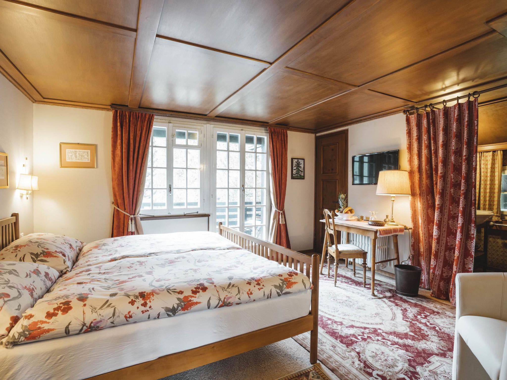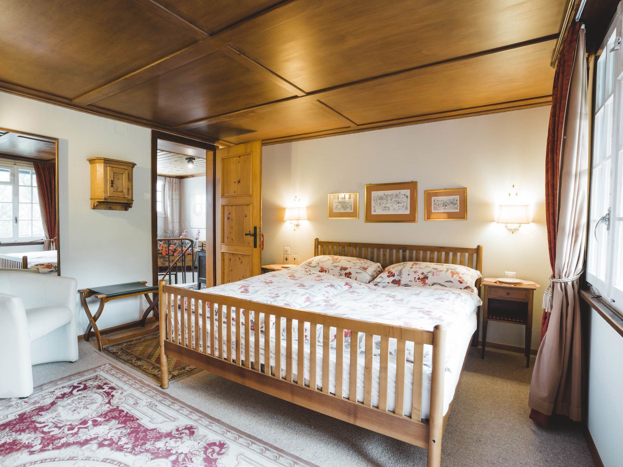 "Chalet Turquino / Apartment Adlerhorst", apt. di 7 locali 250 m2 su 3 piani, esposizione sud. Oggetto adatto a 10 adulti + 2 bambini. Spazioso, arredamento elegante e accogliente: soggiorno grande con camino, libreria e TV. Uscita sul balcone, esposizione sud e esposizione est. Sala da pranzo. 1 camera con 1 letto doppio (1 x 180 cm, lunghezza 200 cm), vasca/WC, lavabo e bidet. Uscita sul balcone, esposizione est con vasca/WC e bidet. Grande cucina (forno, lavastoviglie, 5 piastre ad induzione, tostapane, bollitore elettrico, forno a microonde, congelatore, macchina da caffè elettrica). WC separato. Riscaldamento. Piano inferiore: (scala a chiocciola) 1 camera con TV con 1 letto doppio (1 x 200 cm, lunghezza 200 cm), doccia/WC. Piano superiore: (scala a chiocciola) 1 camera con 1 letto doppio (1 x 160 cm, lunghezza 200 cm), vasca/WC, lavabo e bidet. 1 camera con 1 letto doppio (1 x 180 cm, lunghezza 200 cm), vasca/WC, bidet e TV. Uscita sul balcone, esposizione sud. 1 camera con 1 letto doppio (1 x 180 cm, lunghezza 200 cm), vasca/WC, lavabo e TV. Uscita sul balcone, esposizione sud. 1 camera per bambini con 1 x 2 letti a castello (90 cm, lunghezza 190 cm), vasca/WC. Grande balcone, esposizione sud e esposizione est. Mobili da balcone, barbecue elettrico. Bella vista sul Cervino. A disposizione: Internet (wifi, gratis). Prego notare: appartamento per non fumatori. Massimo 1 animale/cane consentito. Uso benessere a pagamento possibile nell'Hotel Alpen Resort.