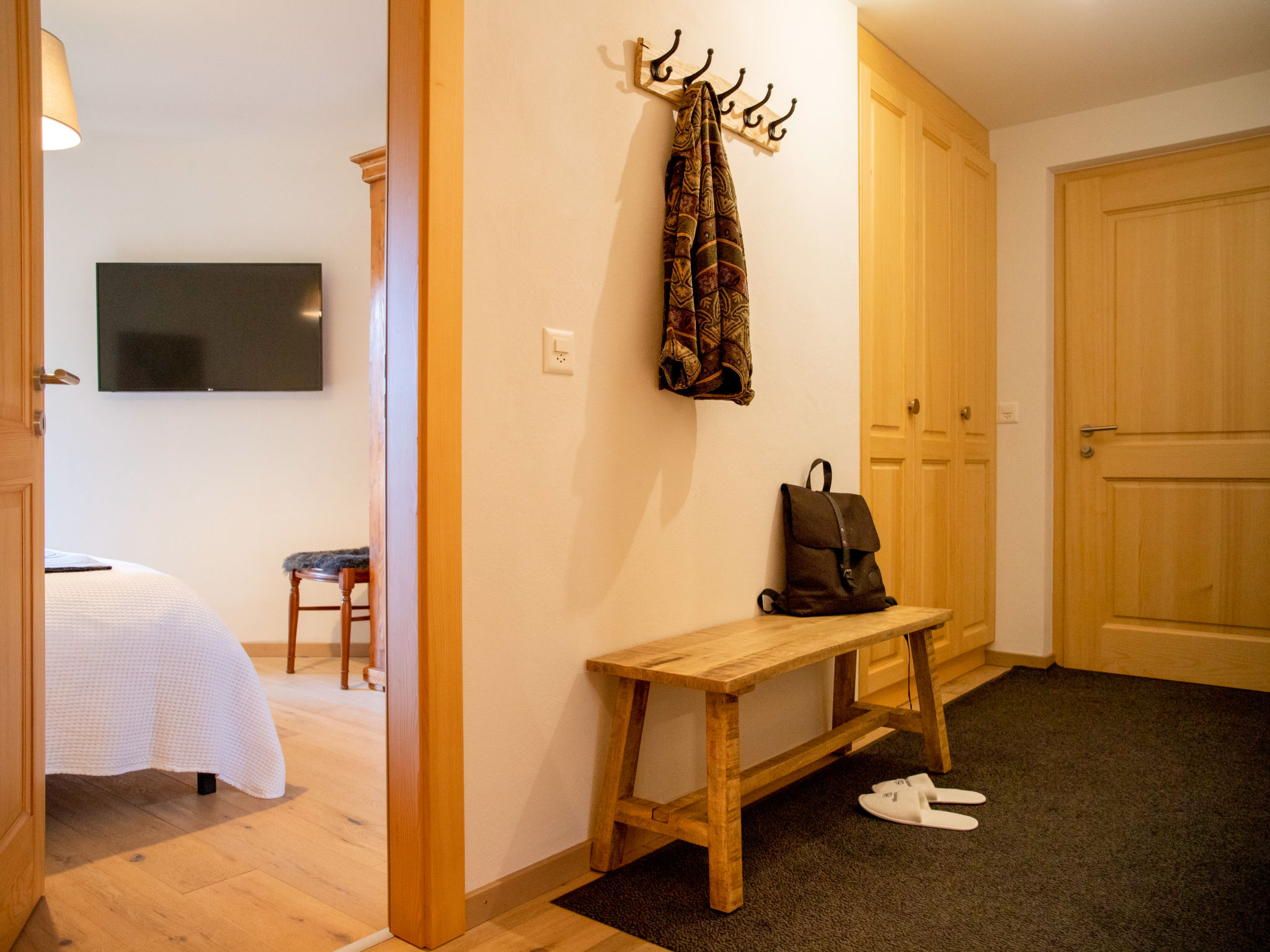 "Chalet Sans Soucis", apt. di 4 locali 74 m2 su 2 piani al 1. piano, esposizione sud. Restaurato nel 2020, arredamento confortevole e di buon gusto: 1 camera con 1 letto alla francese (1 x 160 cm). Uscita sul balcone, esposizione sud. 1 camera con 2 letti (90 cm). Vasca/WC, vasca idromassaggio. Piano superiore: soggiorno/sala da pranzo piccolo con tavolo da pranzo. Uscita sul balcone, esposizione sud. 1 camera, senza armadio con 1 letto doppio (2 x 90 cm), doccia/WC. Cucina aperta (forno, lavastoviglie, 4 piastre cottura in vetroceramica, congelatore, macchina da caffè elettrica, capsule per la macchina da caffè (Nespresso) extra). 2 piccoli balconi 10 m2, esposizione sud. Mobili da balcone, barbecue. Parziale vista sulle montagne. A disposizione: lavatrice, asciugatrice. Internet (wifi, gratis). Parcheggio nr. 10 et 11 (recintato, 2 Auto). Prego notare: appartamento per non fumatori. No ascensore.