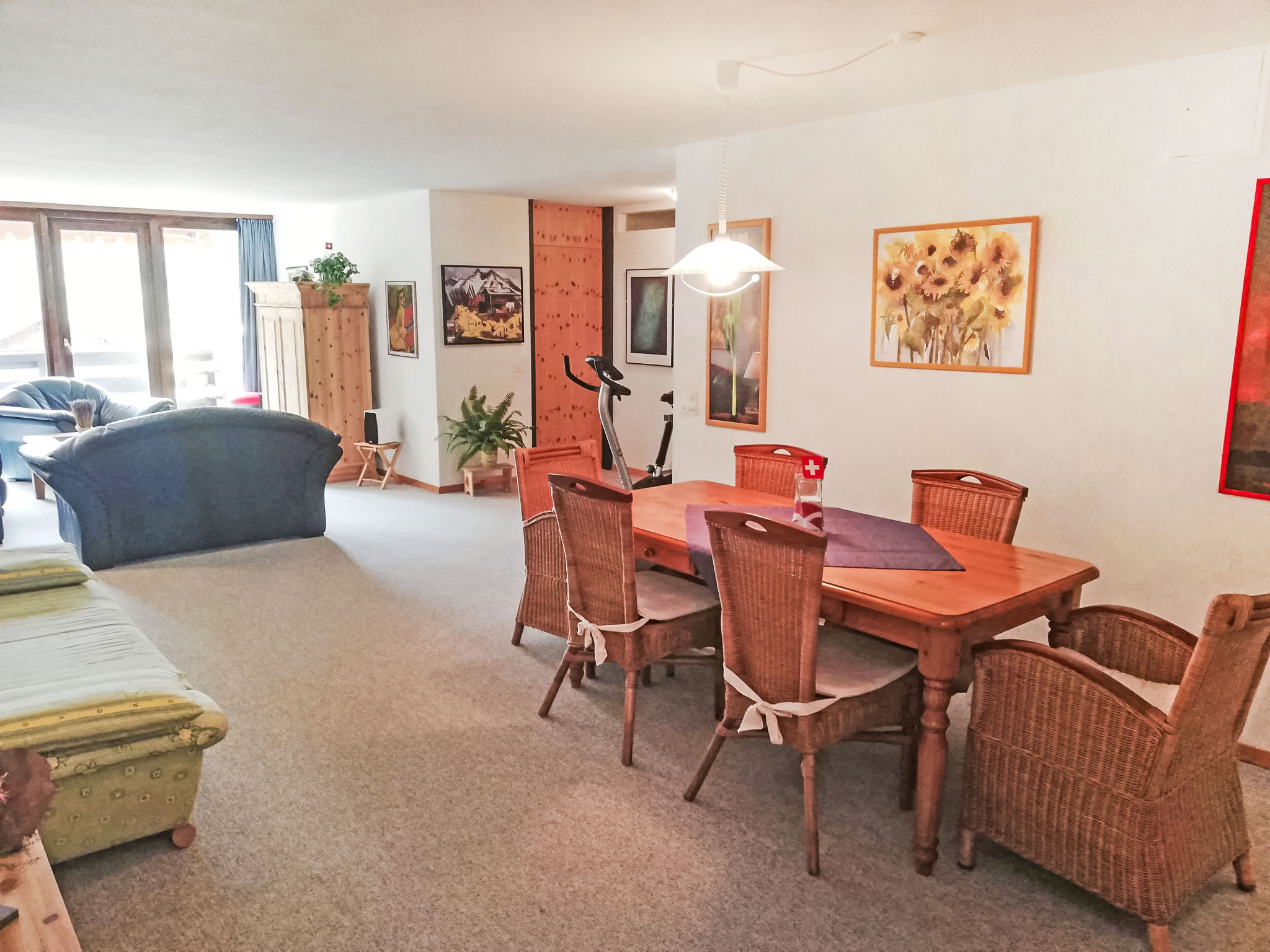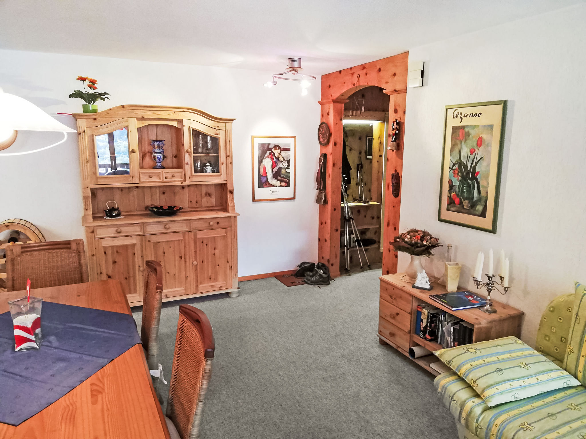 "Apt B 032", apt. di 3 locali 90 m2 al 3. piano. Arredamento accogliente: soggiorno/sala da pranzo con TV (satellite) (schermo piatto), impianto stereo. Uscita sul balcone. 1 camera matrimoniale. Uscita sul balcone. 1 camera piccola, senza finestra con 2 letti. Cucina (forno, 4 piastre cottura in vetroceramica, forno a microonde). Vasca/WC. Balcone, esposizione sud. Mobili da balcone. Splendida vista sulle montagne e sul paesaggio. A disposizione: lettino per bimbi. Internet (wifi, gratis).