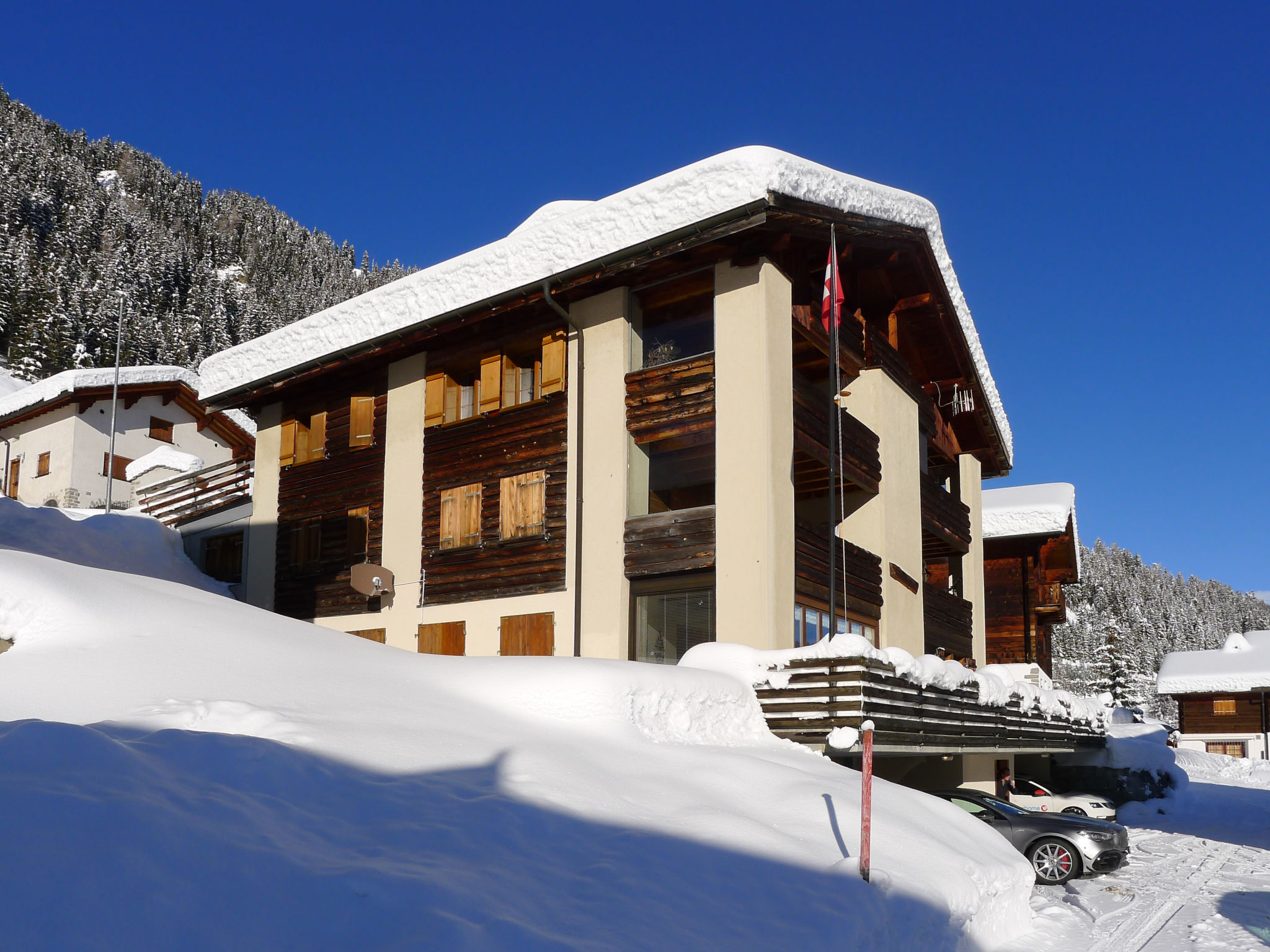 Selva 5 km da Sedrun: Casa plurifamiliare "Alpetta", 1'550 m s.l.m., accogliente, rustica su 3 piani, costruita nel 1984. In periferia, posizione tranquilla, soleggiata, a 8 km dal lago, a 2.5 km dall'area sciistica, immerso nel verde, in un campo di golf. Nella casa: deposito biciclette, deposito sci, riscaldamento centralizzato, lavatrice, asciugatrice (in comune, extra), locale di asciugatura. Accesso fino alla casa. In inverno consigliato 4x4. Parcheggio (per 2 auto) presso la casa. Negozio 6 km, negozio alimentare 6 km, supermercato 6 km, ristorante 1.5 km, fermata bus 350 m, stazione ferroviaria 800 m, piscina coperta 6 km, lago balneabile 8 km. Campo da golf (9 buche) 100 m, sciovia 2.5 km, seggiovia 2.5 km, impianti di risalita 2.5 km, piste da sci 2.5 km, fermata ski bus 350 m, scuola di sci 2.5 km, pista per slitte 2.5 km, pista di fondo 2.5 km, pattinaggio 6 km, parco giochi 2.5 km. Rinomate località sciistiche: Skiarena Andermatt Sedrun 2.5 km. Laghi famosi: Tomasee (Quelle des Rheins) 5 km. Sentieri escursionistici: Oberalppass 5 km. Prego notare: auto consigliata.