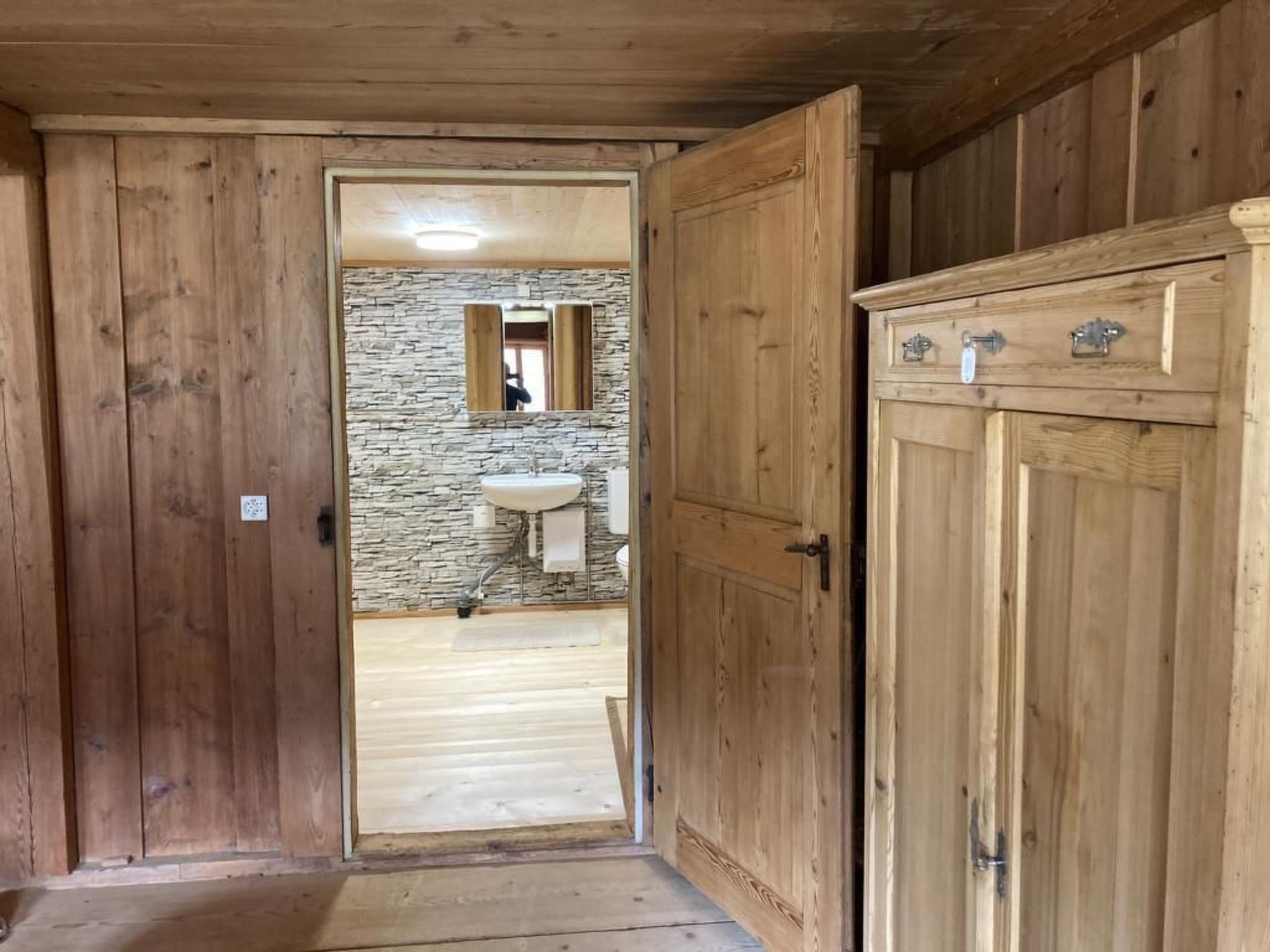 Massimo 2 animali/cani consentiti. The Alpbauernhaus is situated on a hill. Easily accessible by 4x4 car. In a quiet, secluded location with a view of the Guggershörnli and its hilly surroundings. The house is simply furnished but cosy and spacious. The garden / grounds are fenced. Hot and cold running water in the kitchen and bathroom with shower. Situated in the Gantrisch Nature Park, the house is surrounded by beautiful hiking trails. Whether by bike or on foot to the warm Sense, a natural river for picnicking or barbecuing / swimming. Try the Gantrisch via ferrata together with friends or enjoy a romantic moonlit stroll by the Schwarzsee lake - there are many interesting possibilities around the house in the region. In winter, kilometres of cross-country ski trails in the Gurnigel area and the beautiful ski slopes of Schwarzsee, Sellital, the children's ski lift in Riffenmatt and La Berra are tempting. The nearby Gruyères Castle (23km) can be easily reached by car in an hour. The show dairy is a highlight of the Gruyère region. The folkloric customs and specialities such as merinque and double cream are a must-try. Good food shopping opportunities in the nearby village of Plaffeien (8km). A corner shop in Riffenmatt (5km)Other sports and leisure facilities: Eywald swimming pool 6km TCS panorama board Guggisberg 4.6kmPlasselb tennis court / indoor tennis centre 2.8kmMAHU bike and sports shop Plaffeien 8.8kmExcursion possibilities: The Gantrisch Nature Park offers wonderful mountain tours and hiking routes. The Sense, a natural river, is a wonderful place for a picnic or a barbecue / swim. Gantrisch hut 16 km away, ideal starting point for climbing. 4 km away, nearby Guggisberg is a well-known village with prehistory. Vreneli and Joggeli from Guggisberg. The Vreneli Museum is only open for guided tours by prior arrangement. www. vreneli-museum. chDer The ascent to Guggershörnli is easily accessible on foot. The view is worth it. Other living room equipment (living room 1): Hot-air stove via wood-burning stove in the kitchen, TV with satellite TV, DAB radio with BluetoothOther bedroom furnishings (bedroom 1): Space for extra bed for cotOther kitchen equipment (kitchen1): Wood burner can also be used for cookingDelizio capsule machine (please bring your own capsules)The kitchen is modestly equipped. Salt, pepper, sugar, vinegar and oil, meat seasoning. Sporting activities in the surrounding area: mountaineering, hunting, mountain biking, cycling, alpine skiing, cross-country skiingLocation description: The municipality of Guggisberg lies in the foothills of the Alps in the Gantrisch Nature Park at 1000 metres above sea level.