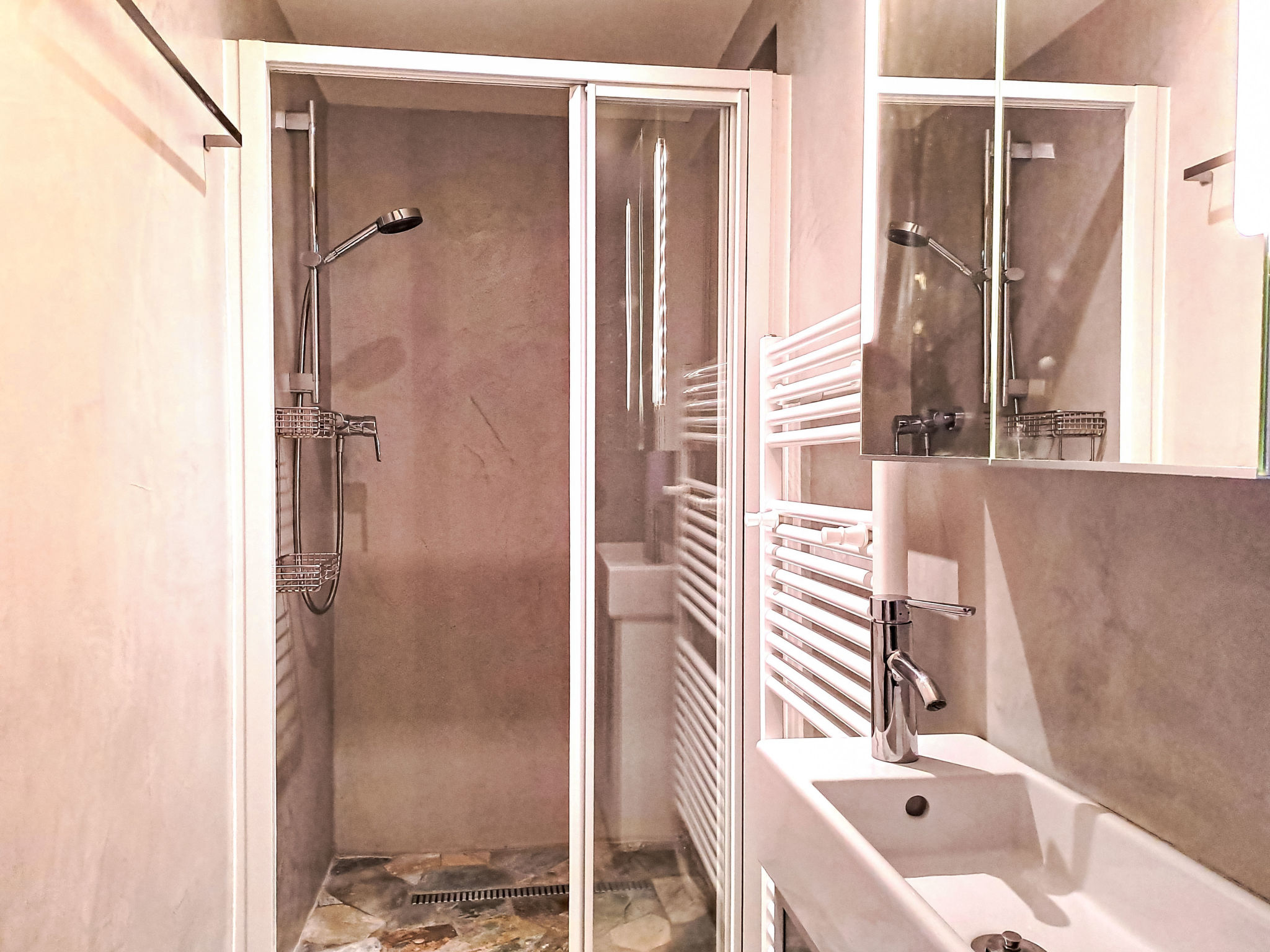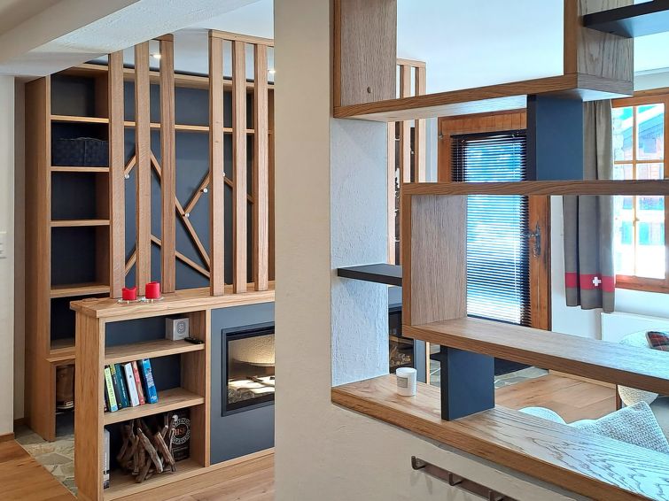 "Rousserolles 2", apt. di 5 locali 100 m2, al pianterreno. Completamente restaurato, arredamento molto gradevole e moderno: soggiorno/sala da pranzo con TV (via cavo) e riscaldamento elettrico. 4 camere, ogni camera con 3 letti (140 cm, lunghezza 200 cm). Cucina aperta (forno, lavastoviglie, 4 piastre cottura in vetroceramica, tostapane, bollitore elettrico, congelatore, macchina da caffè elettrica, capsule per la macchina da caffè (Nespresso) extra, set per raclette, set per fondue (formaggio)). Vasca/WC, 2 doccia/WC. Caminetto elettrico. Pavimenti in parquet. Bella vista sulle montagne. A disposizione: asciugacapelli. Internet (wifi, gratis). Parcheggio. Prego notare: appartamento per non fumatori.