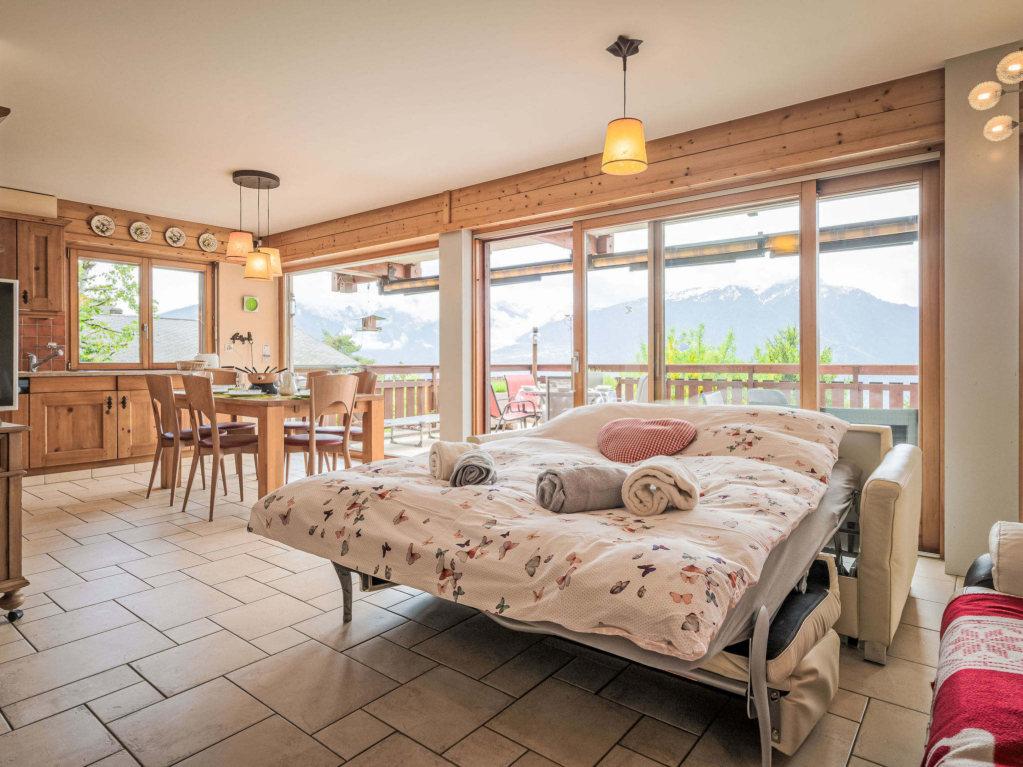 "Carving R02", apt. di 3 locali 75 m2 al 1. piano, esposizione sud. Oggetto adatto a 4 adulti + 2 bambini. Spazioso e luminoso, arredamento molto gradevole e di buon gusto: soggiorno/sala da pranzo con 1 divano letto (140 cm, lunghezza 190 cm), stufa svedese e TV (via cavo). Uscita sul balcone. 1 camera con 1 letto alla francese (160 cm, lunghezza 200 cm). 1 camera con 1 letto alla francese (160 cm, lunghezza 200 cm). Cucina aperta (forno, lavastoviglie, 4 piastre cottura in vetroceramica, tostapane, bollitore elettrico, forno a microonde, macchina da caffè elettrica, capsule per la macchina da caffè (Nespresso) extra, set per raclette, set per fondue (formaggio)). Doccia/WC, WC separato. Grande balcone 42 m2, esposizione sud e esposizione ovest. Mobili da balcone, barbecue elettrico, sedie a sdraio (2). Splendida vista sulle montagne, sulla valle e sul paesaggio. A disposizione: ferro da stiro, asciugacapelli. Internet (wifi, gratis). Garage (2 Auto), altezza 210 cm. Prego notare: appartamento per non fumatori.