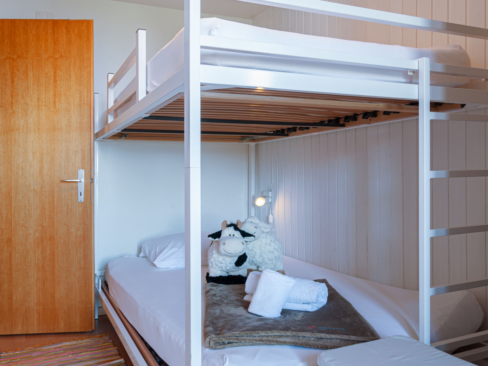 "Lao-Lao", chalet 3 locali 60 m2. Arredamento gradevole e accogliente: soggiorno/sala da pranzo con 1 divano letto (80 cm, lunghezza 180 cm), camino (solo con funzione decorativa), TV (satellite), radio e CD. Uscita sul balcone. Cucina aperta (forno, lavastoviglie, 4 piastre cottura in vetroceramica, tostapane, bollitore elettrico, forno a microonde, macchina da caffè elettrica, capsule per la macchina da caffè (Nespresso) extra, set per raclette, set per fondue (chinoise, formaggio)). Riscaldamento elettrico. Piano inferiore: 1 camera con 1 letto doppio (2 x 90 cm, lunghezza 200 cm). Uscita sul giardino, esposizione est. 1 camera con 1 x 2 letti a castello (120 cm, lunghezza 200 cm). Uscita sul giardino, esposizione est. Vasca/WC. Balcone, esposizione est. Mobili da terrazza, barbecue, sedie a sdraio (4). Splendida vista sulle montagne e sulla valle. A disposizione: asciugacapelli. Internet (wifi). Parcheggio. Prego notare: appartamento per non fumatori. Tv solo in CH, DE.