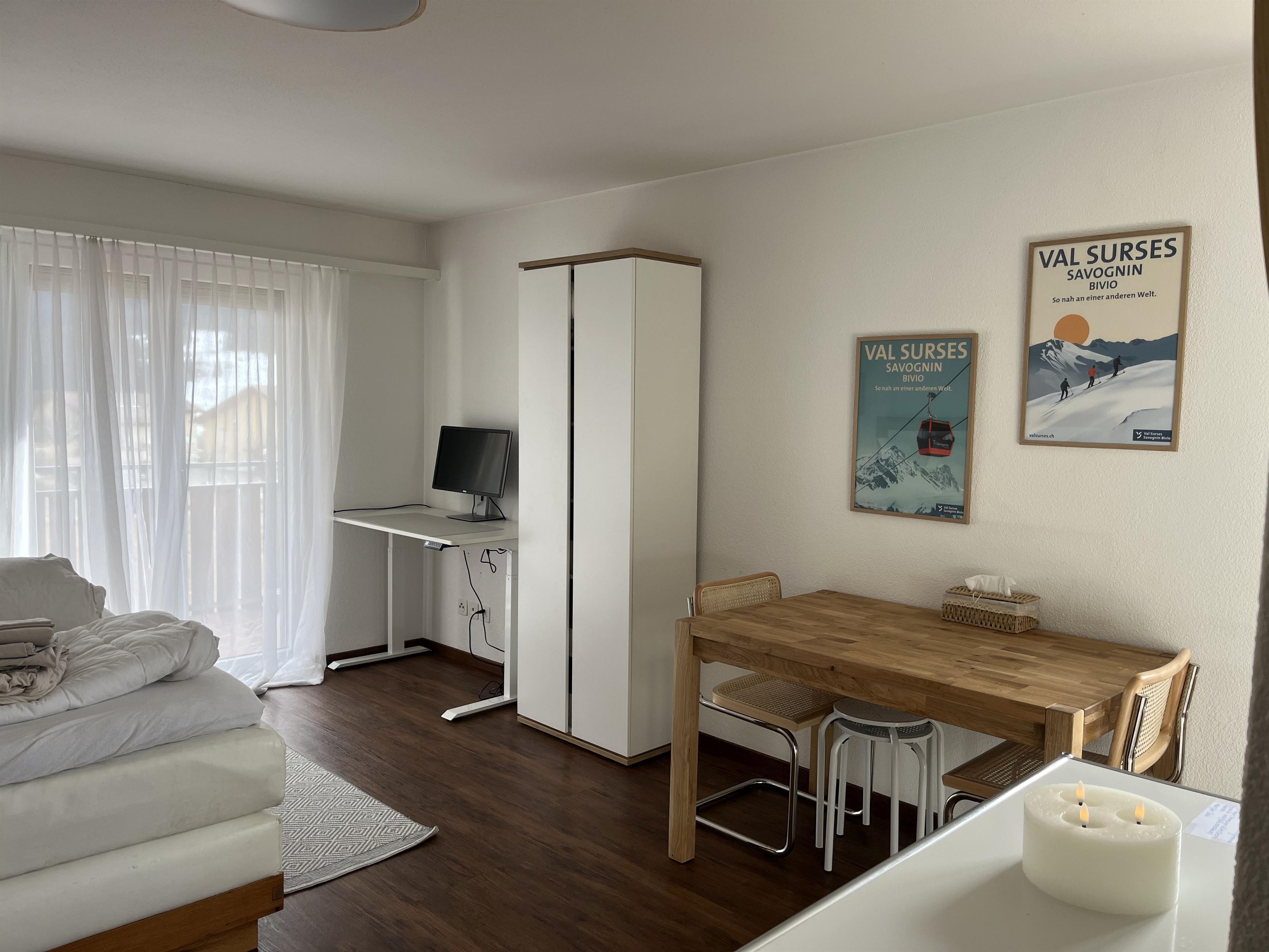 Monolocale di circa 30 m² in un condominio al 1° piano. 1 letto matrimoniale 180x200, 1 divano letto 120x200 cm. In totale 3 letti. Biancheria da letto, da cucina e da bagno disponibile. Cucina con forno, frigorifero, lavastoviglie e macchina da caffè (capsule Nespresso). Bollitore, forno per raclette. Bagno/WC. Asciugacapelli. Animali non ammessi. Appartamento per non fumatori. Balcone. Garage in rimessa (altezza ingresso 2 m), parcheggio davanti alla casa.