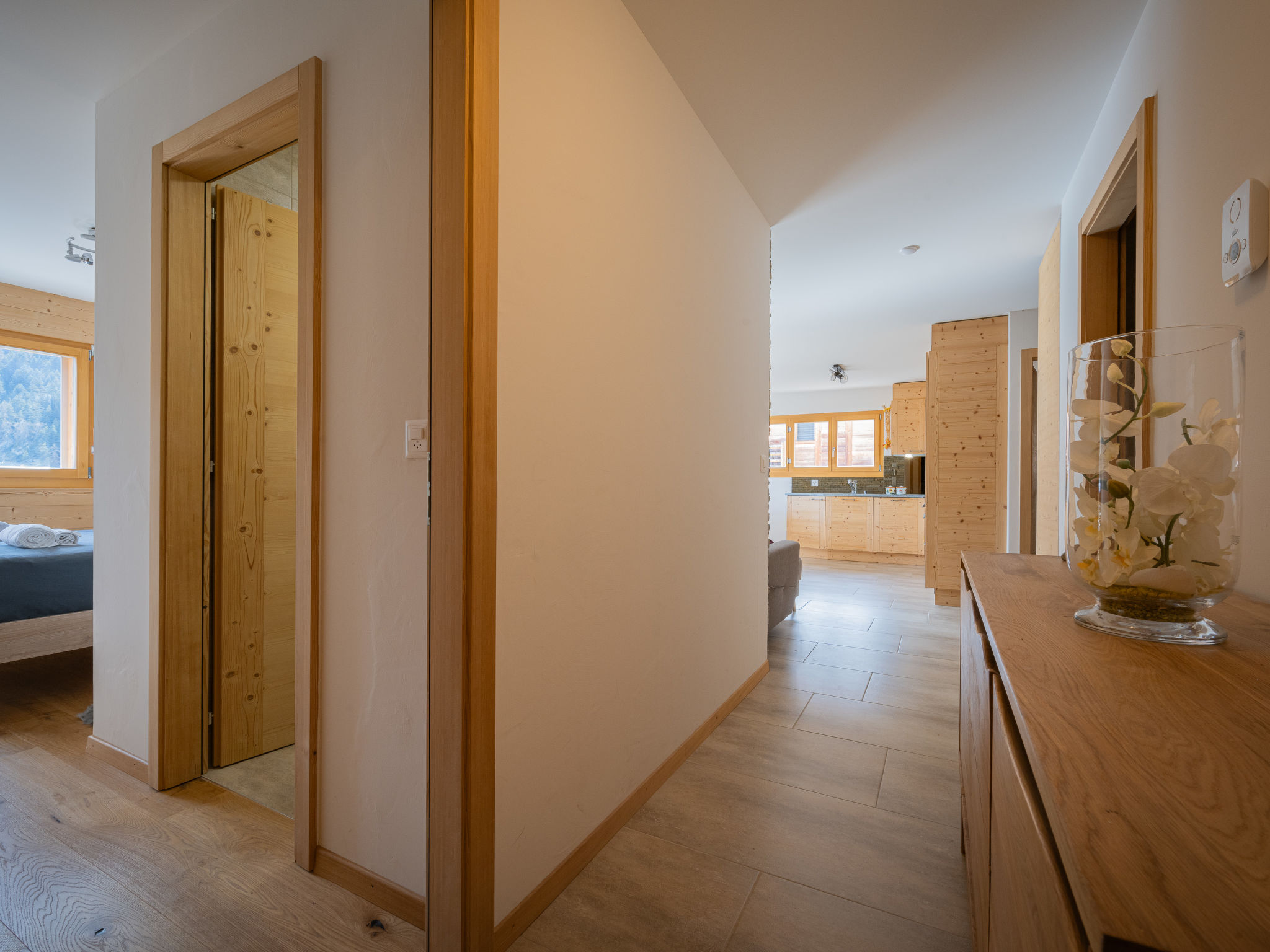 "L' O 12", apt. di 3 locali 90 m2 al 3. piano, esposizione sud. Spazioso e luminoso, arredamento confortevole e moderno: ingresso. Soggiorno/sala da pranzo con TV (via cavo). Uscita sul balcone, esposizione sud. 1 camera con 1 letto alla francese (190 cm, lunghezza 200 cm), vasca/WC e TV (via cavo). 1 camera per bambini con 2 x 2 letti a castello (90 cm, lunghezza 200 cm). Cucina aperta (lavastoviglie, 4 piastre cottura in vetroceramica, tostapane, bollitore elettrico, congelatore, macchina da caffè elettrica, capsule per la macchina da caffè (Delizio) extra, set per raclette, set per fondue (chinoise, formaggio)) con tavolo da pranzo. Vasca/WC, WC separato. Grande balcone 12 m2, esposizione sud. Mobili da balcone, sedie a sdraio (2). Splendida vista sulle montagne. A disposizione: lavatrice, asciugatrice, ferro da stiro, asciugacapelli. Internet (wifi, gratis). Parcheggio nr. 38 (1 Auto), garage nr. 2 (1 Auto), altezza 200 cm, larghezza 230 cm. Prego notare: adatto alle famiglie. Appartamento per non fumatori.