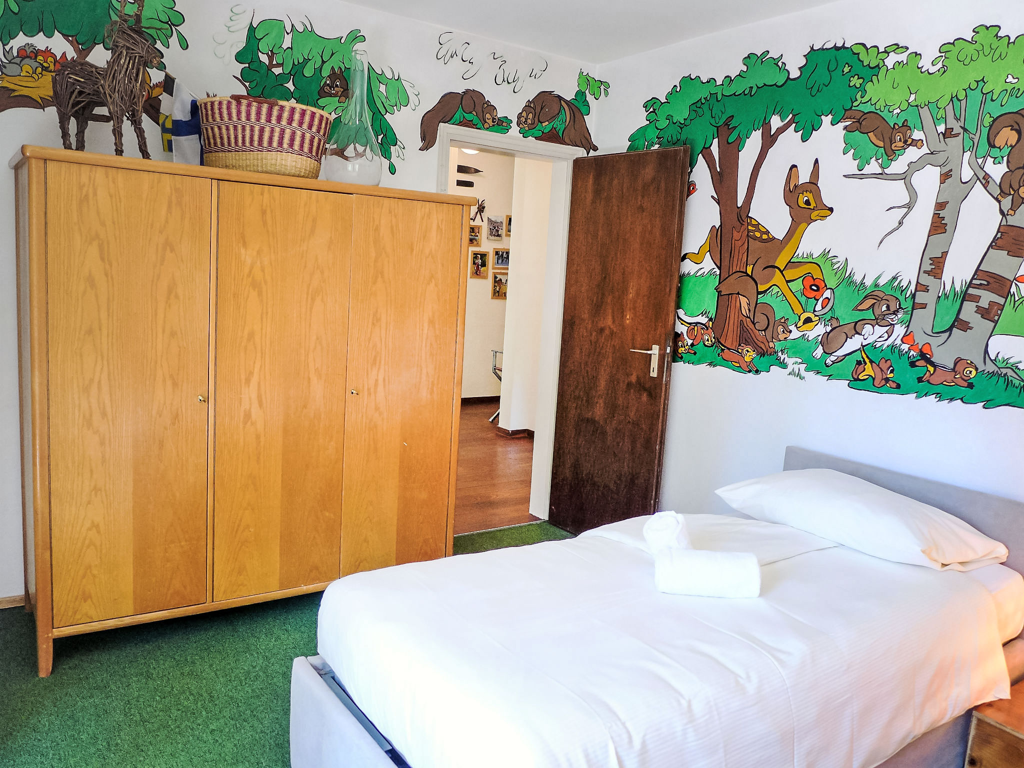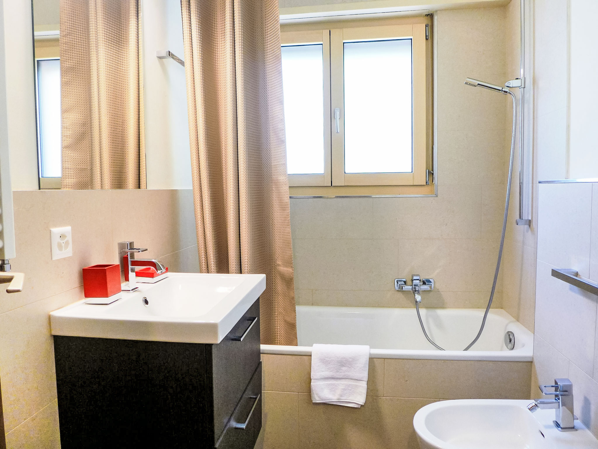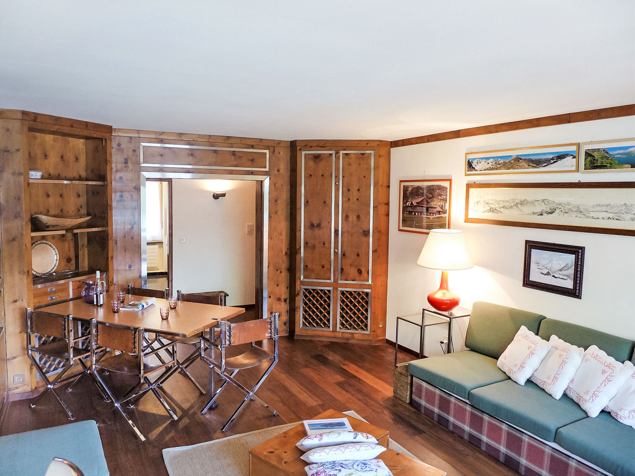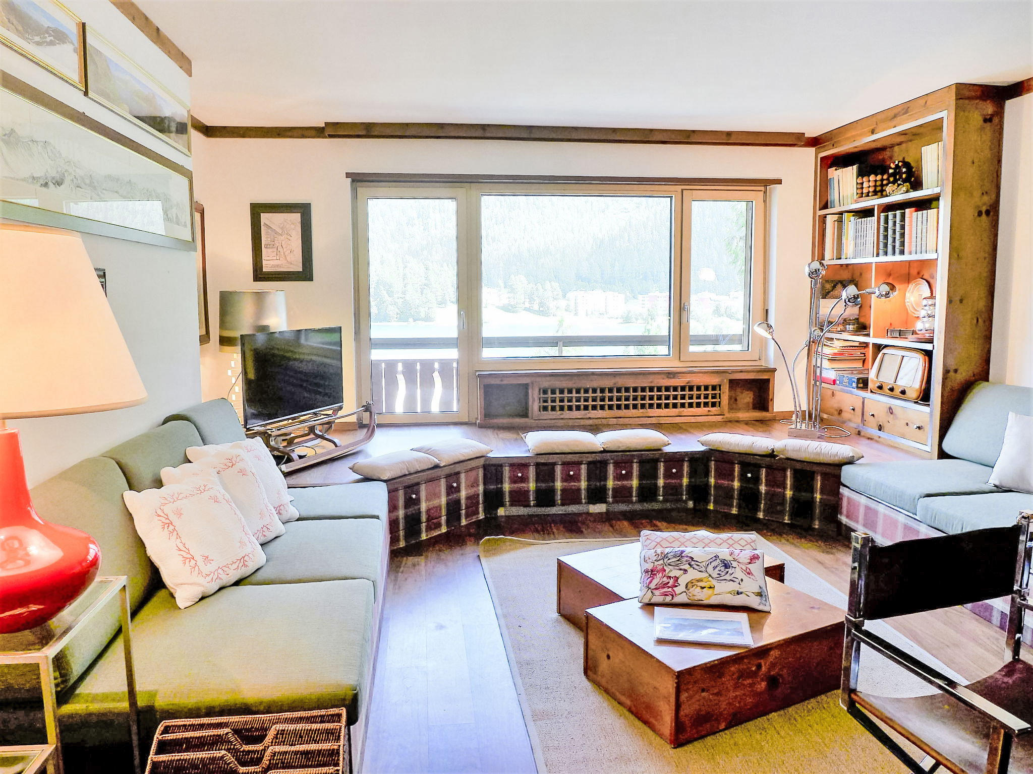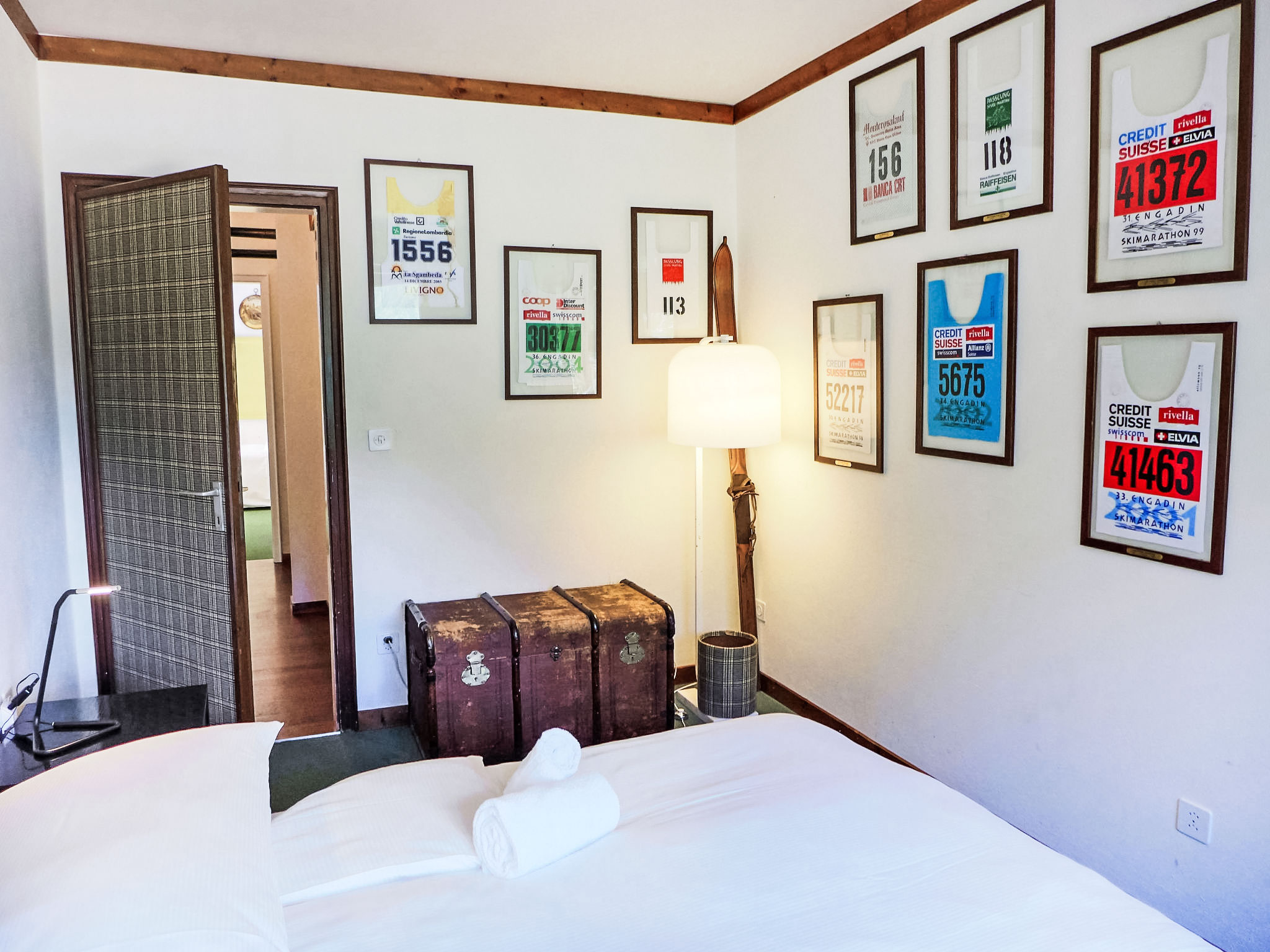 "Chesa Sonnalpine B 46", apt. di 5 locali 105 m2 al 4. piano. In parte restaurato nel 2018, arredamento funzionale: soggiorno/sala da pranzo con TV e radio. Uscita sul balcone, esposizione sud-est. 1 camera matrimoniale con 2 letti (90 cm, lunghezza 190 cm). 1 camera con 2 letti (80 cm, lunghezza 190 cm). 1 camera per bambini con 2 letti (90 cm, lunghezza 200 cm), 1 letto estraibile. Uscita sul balcone. 1 camera con 1 letto doppio (1 x 160 cm, lunghezza 190 cm). Piccola cucina 8 m2 (forno, lavastoviglie, 4 piastre ad induzione, tostapane, bollitore elettrico, congelatore, macchina da caffè elettrica, capsule per la macchina da caffè (Nespresso) extra, set per fondue (chinoise, formaggio)). Vasca/bidet/WC, WC separato, vasca/doccia/WC. 2 balconi. Bella vista sul lago e sulle montagne. A disposizione: asciugacapelli. Internet (wifi, gratis). Garage nr. 46 (1 Auto), altezza 183 cm, larghezza 240 cm. Prego notare: appartamento per non fumatori. Massimo 2 animali/cani consentiti. Il posto auto in garage ha un'altezza e una profondità limitata.