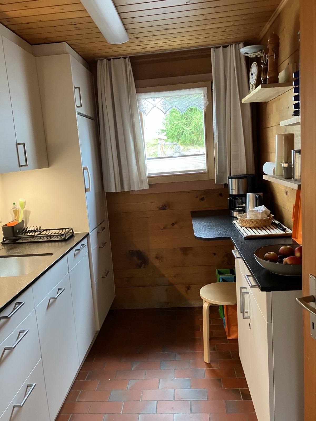 Appartamento luminoso di 3 locali in un chalet, situato in una zona tranquilla, nella parte alta del villaggio con vista sulla valle. Vicino alla funivia e al sentiero escursionistico "Gommer Höhenweg". Grande giardino e balcone. Posto auto privato davanti alla casa.
