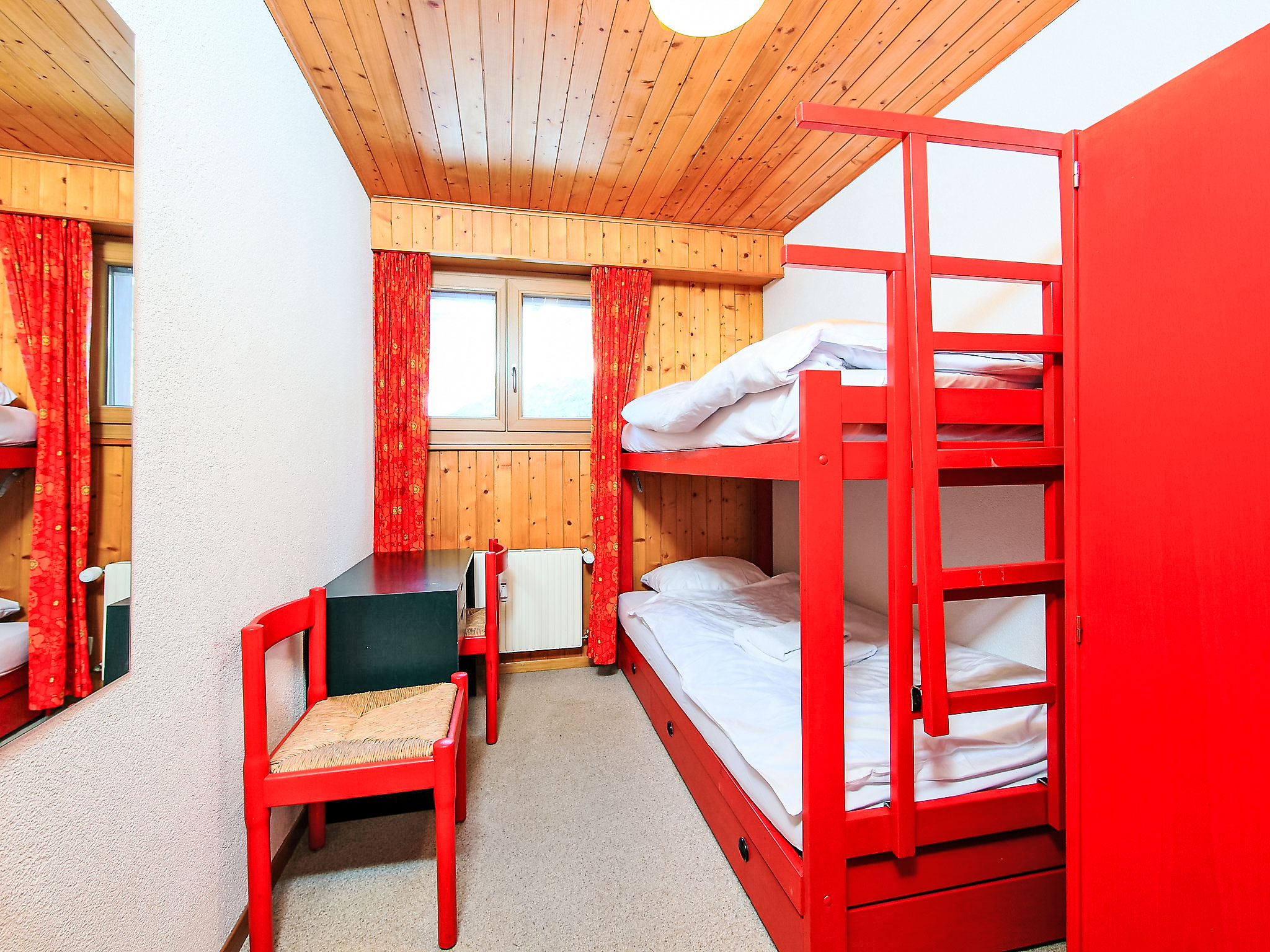 "Porthos 37", apt. di 4 locali 75 m2 al 2. piano, esposizione sud. Arredamento funzionale: soggiorno/sala da pranzo con tavolo da pranzo e TV (via cavo). Uscita sul balcone, esposizione sud. 1 camera esposizione nord con 1 x 2 letti a castello (80 cm, lunghezza 190 cm). 1 camera grande, esposizione sud con 1 letto doppio (2 x 90 cm, lunghezza 190 cm). 1 camera piccola, esposizione ovest con 1 letto doppio (2 x 90 cm, lunghezza 190 cm). Uscita sul balcone, esposizione sud. Cucina (3 punti cottura, forno, lavastoviglie, tostapane, bollitore elettrico, forno a microonde, set per raclette, set per fondue (chinoise, formaggio)). Vasca/WC, WC separato. Grande balcone, esposizione sud. Mobili da balcone, sedie a sdraio (4). Bella vista panoramica sulle montagne e sul paesaggio. A disposizione: asciugacapelli. Internet (wifi, gratis). Garage nr. 9 a 800 m, altezza 215 cm. Prego notare: appartamento per non fumatori. Massimo 1 animale/cane consentito. 143.403.003.10