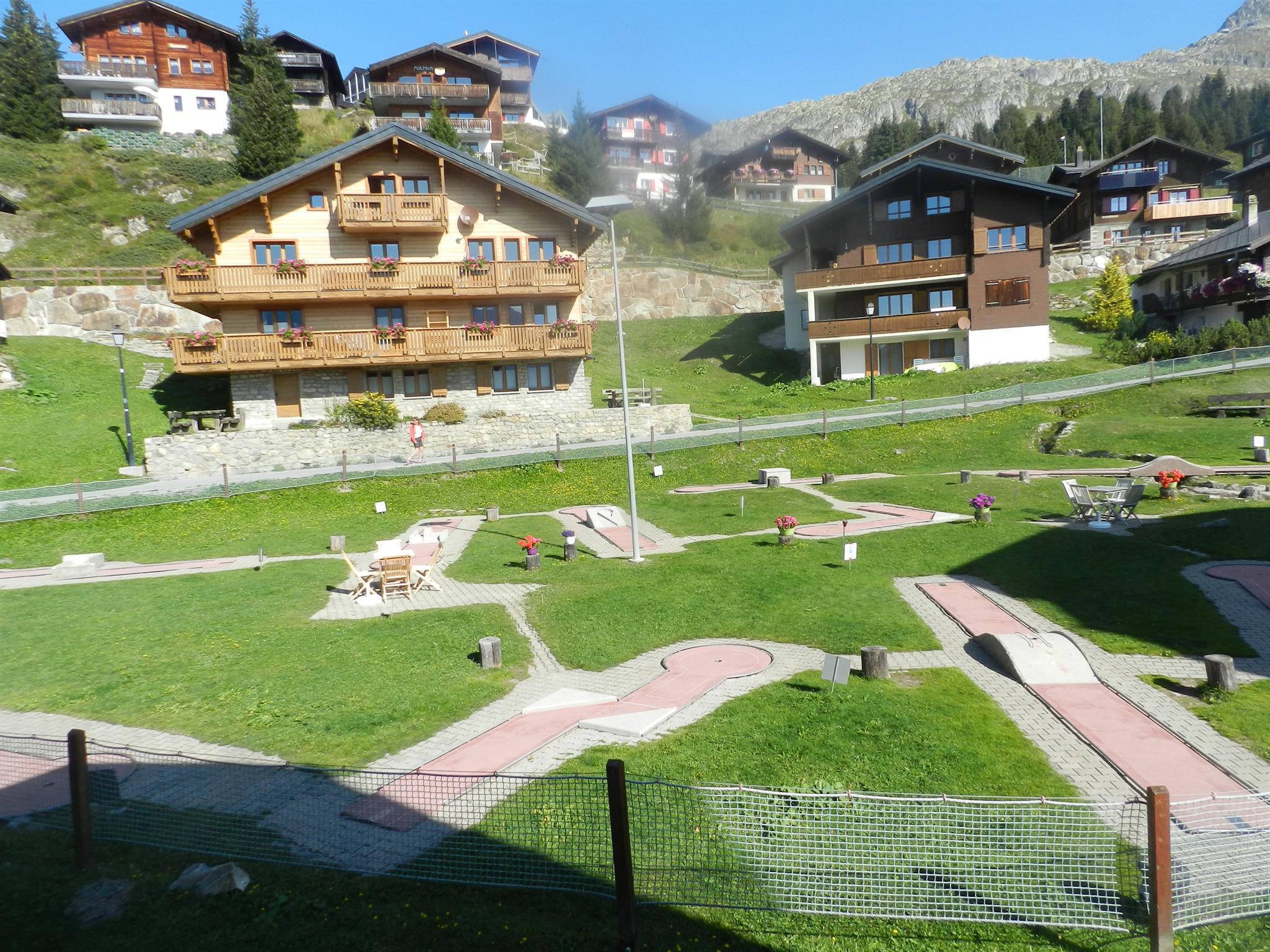 Das Ferienhaus befindet sich in einer ruhigen und dennoch zentralen Lage direkt beim Minigolfplatz. Während der Wintersaison dient dieser Ort auch als Sammelplatz für die Skischule der Erwachsenen. Die Sesselbahn Schönbiel ist in wenigen Gehminuten erreichbar. Vom Balkon der Unterkunft geniesst du eine beeindruckende Aussicht auf das Matterhorn und die umliegenden Walliser Alpen.