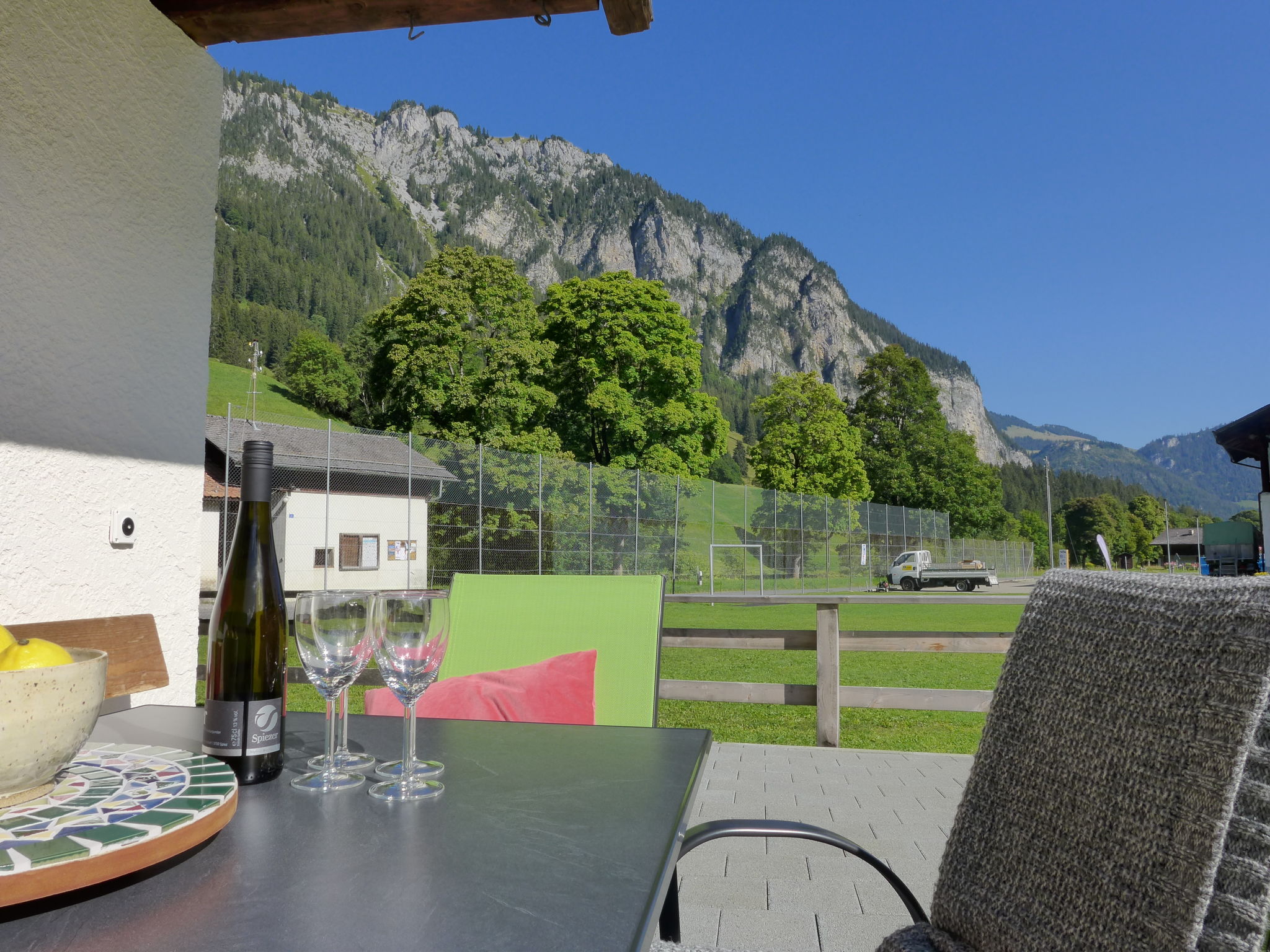 "Matte (Alte Post)", apt. di 3 locali 118 m2, al pianterreno. Spazioso e luminoso, restaurato nel 2019, arredamento confortevole e di buon gusto: soggiorno/sala da pranzo grande con tavolo da pranzo, tv digitale, schermo piatto, radio e impianto stereo. 2 camere matrimoniali, ogni camera con 1 letto doppio (160 cm, lunghezza 200 cm). Grande cucina aperta (forno, lavastoviglie, 4 piastre cottura in vetroceramica, tostapane, bollitore elettrico, forno a microonde, congelatore, macchina da caffè elettrica, capsule per la macchina da caffè (Nespresso) extra, set per raclette, set per fondue (formaggio)) con tavolo da pranzo. Uscita sul giardino. Doccia/WC, WC separato. Riscaldamento a pavimento. Pavimenti in legno. Grande terrazza, esposizione sud, patio. Magnifica vista sulle montagne e sul paesaggio. A disposizione: lavatrice, asciugatrice, ferro da stiro, seggiolone, lettino per bimbi fino 2 anni (extra), asciugacapelli. Internet (wifi, gratis). Parcheggio (2 Auto). Prego notare: adatto alle famiglie. Appartamento per non fumatori. Allarme antifumo, estintore. Breakfast basket with local products can be booked separately.