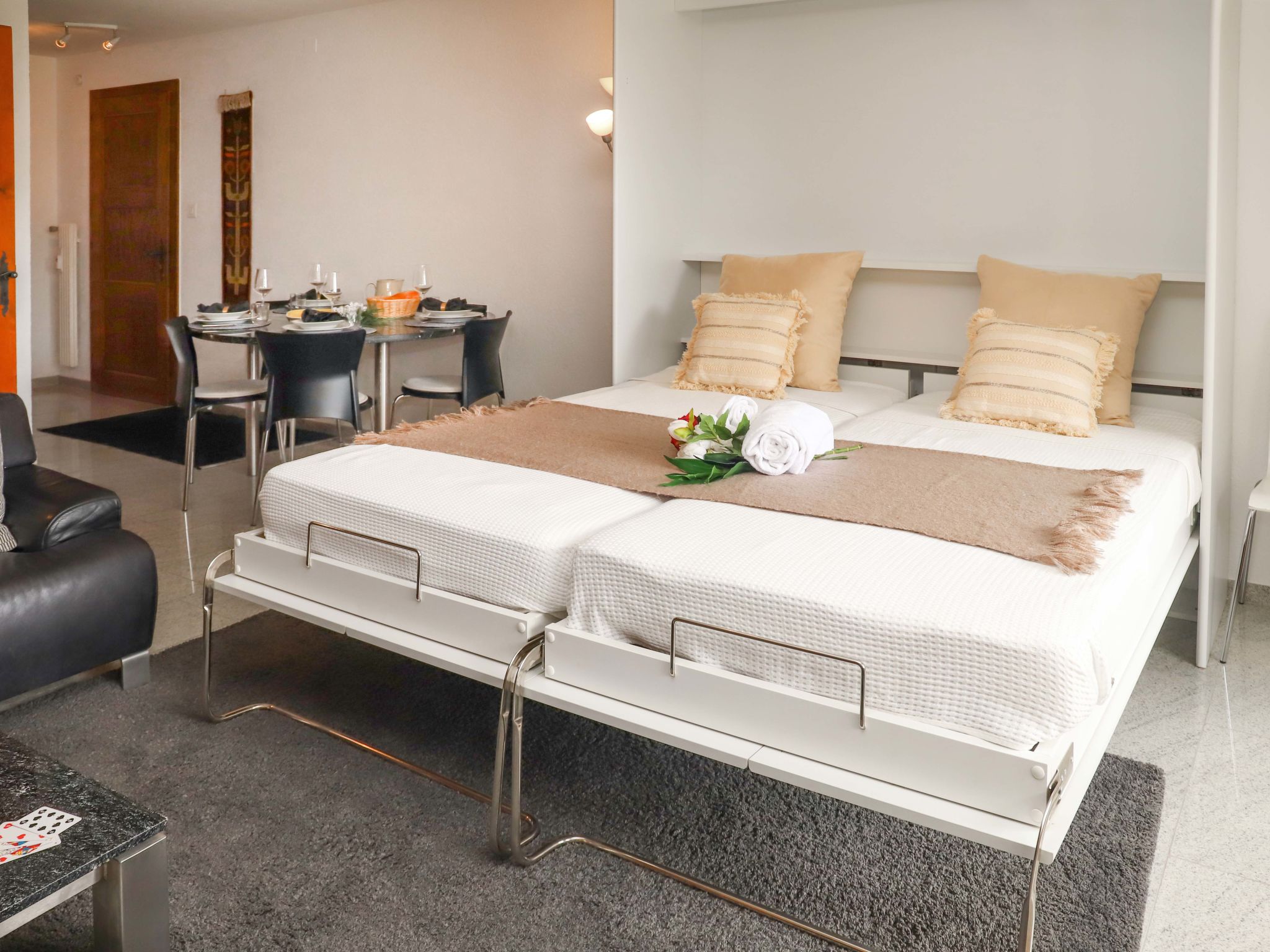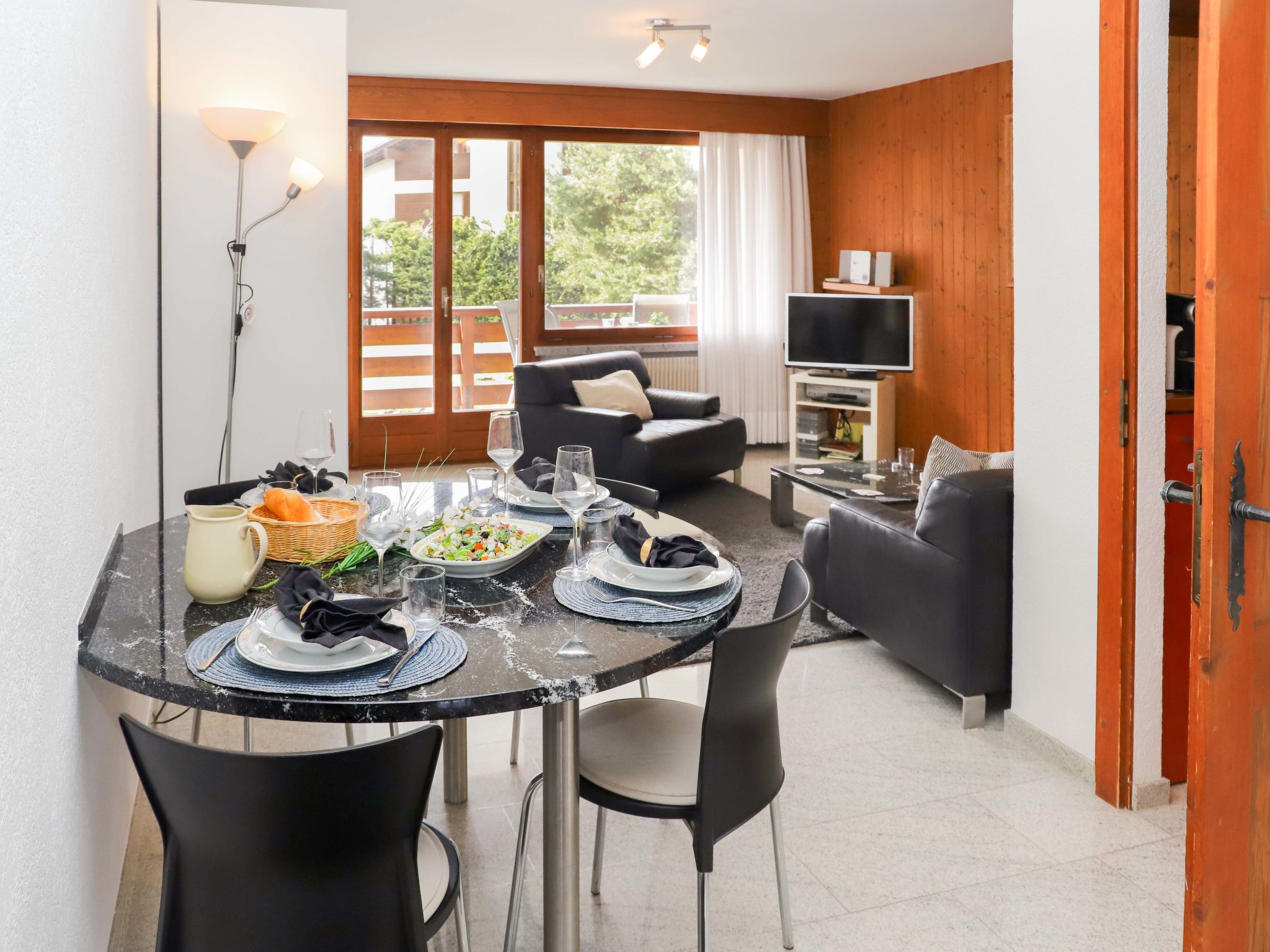 "Vert Pré 2", apt. di 2 locali 35 m2, piano rialzato. Arredamento funzionale e gradevole: soggiorno/sala da pranzo grande con 2 letti (90 cm, lunghezza 200 cm), TV (via cavo). Uscita sul balcone. 1 camera grande con 1 letto alla francese (1 x 160 cm, lunghezza 200 cm). Angolo cottura (3 punti cottura, forno, macchina da caffè elettrica, capsule per la macchina da caffè (Nespresso) extra, set per fondue (formaggio)). Doccia/WC. Balcone 6 m2. Mobili da balcone. Vista sulle montagne. A disposizione: Internet (wifi, gratis). Parcheggio nr. 02 (1 Auto). Prego notare: appartamento per non fumatori.