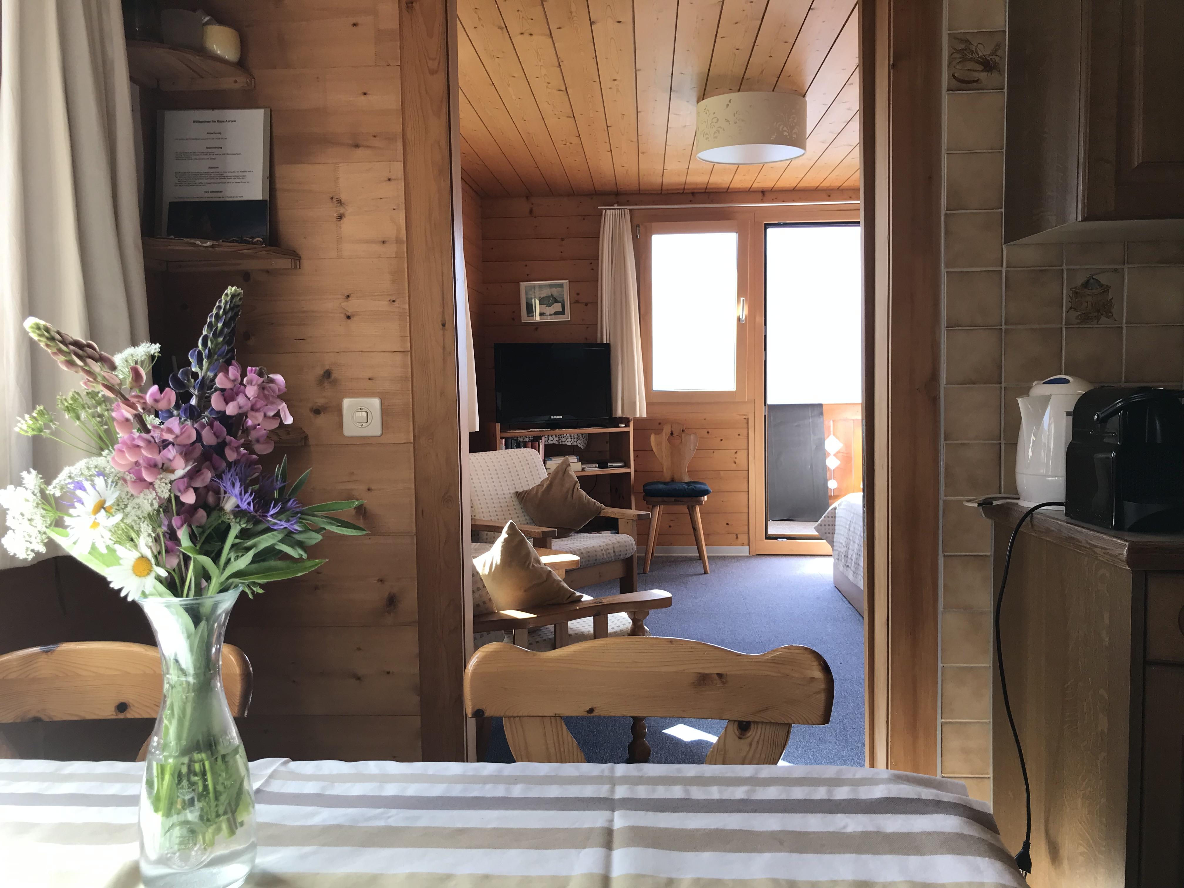 Das 1986 errichtete Chalet ist in Holz gebaut, rustikal und sehr heimelig. Es ist stets gepflegt und sehr gut unterhalten.