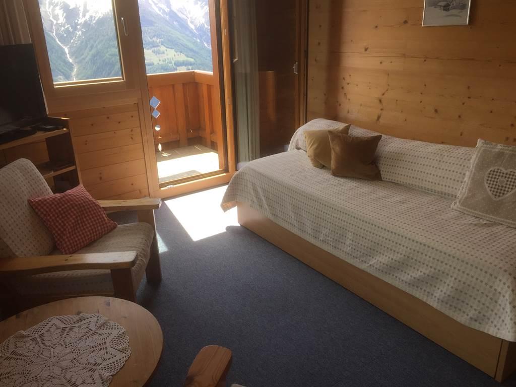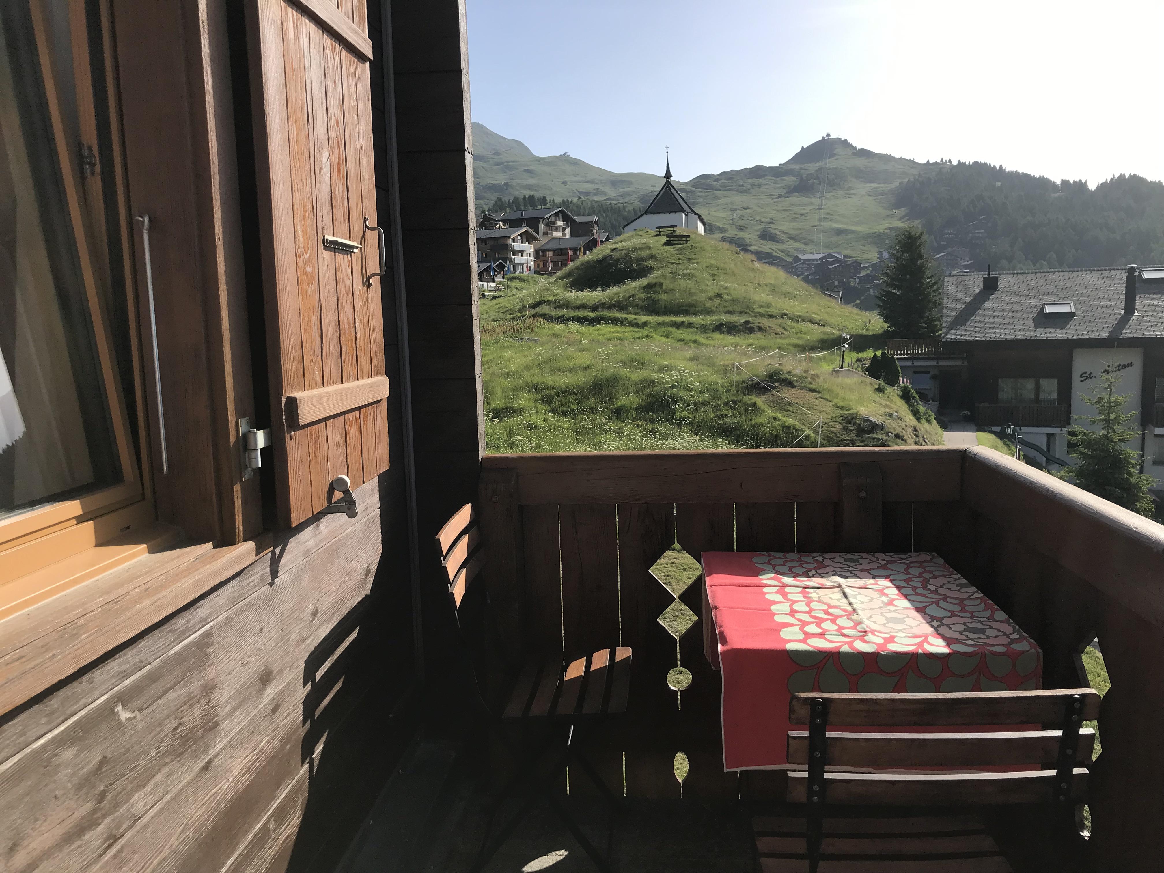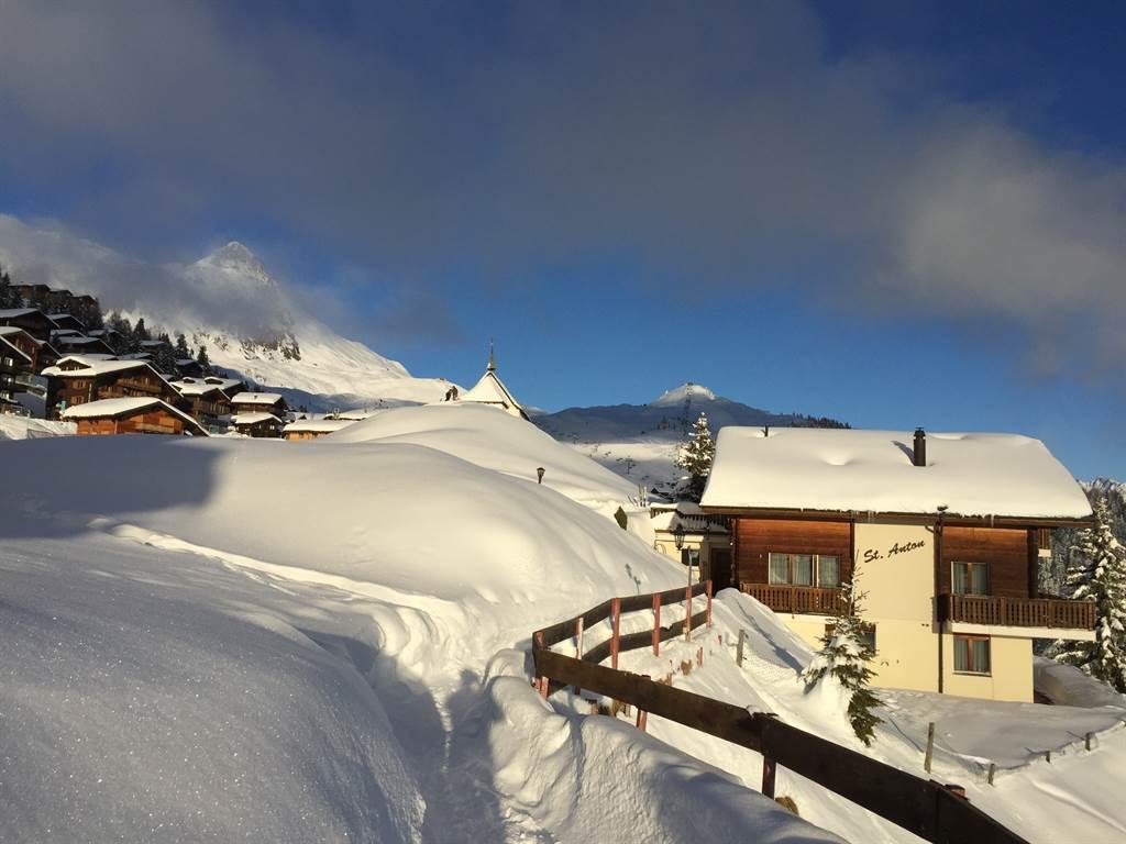 Das Haus liegt ruhig und zentral, unweit der Hauptstrasse, 3 Gehminuten von der Seilbahn, 5 Gehminuten vom Zentrum, westlich der Kapelle, unmittelbar beim Einkaufsgeschäft Coop.