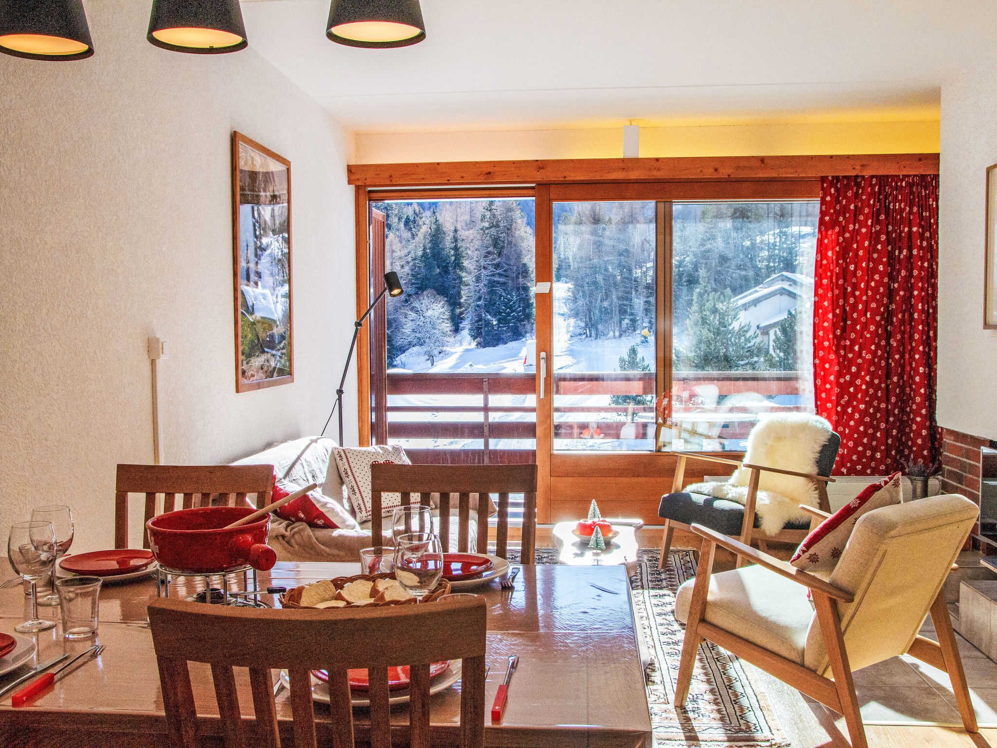 "Rosablanche A21", apt. di 2 locali 60 m2 al 2. piano. Arredamento gradevole: soggiorno/sala da pranzo con 1 letto estraibile (2 pers. 2 x 90 cm, lunghezza 190 cm), camino (solo con funzione decorativa), TV (via cavo). 1 camera con 1 letto doppio (2 x 90 cm, lunghezza 200 cm). Cucina (forno, lavastoviglie, 4 piastre cottura in vetroceramica, tostapane, forno a microonde, macchina da caffè elettrica, capsule per la macchina da caffè (Delizio) extra, set per fondue (formaggio)). Bagno, WC separato. Balcone, esposizione sud. Mobili da balcone. Vista sulla pista da sci. A disposizione: Internet (wifi, gratis). Prego notare: casa per non fumatori. Ascensore A. Camino non funzionante.