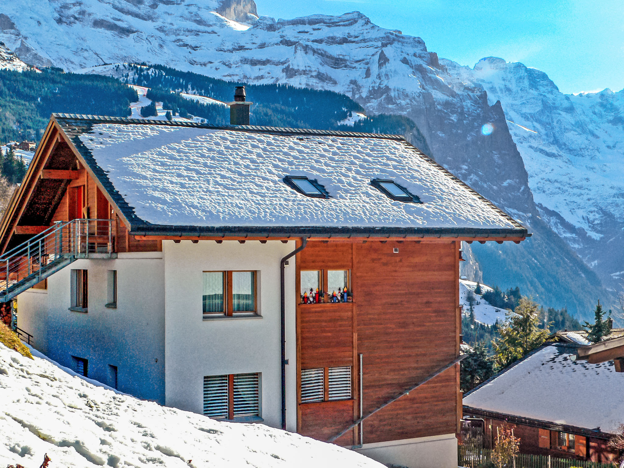 Casa plurifamiliare "Rose", piacevole. In periferia, a 700 m dal centro, posizione soleggiata sul pendio, esposizione sud-ovest. Nella casa: riscaldamento centralizzato. Negozio, negozio alimentare, supermercato 700 m, ristorante 350 m, 10 minuti a piedi dal centro, fermata bus "Lauterbrunnen (by train)" 3.7 km, stazione ferroviaria "Wengen" 700 m, piscina 900 m. Tennis, funicolare, impianti di risalita, scuola di sci, pattinaggio 700 m. Laghi famosi: Thunersee 13 km, Brienzersee 13 km. Prego notare: complesso di vacanza non accessibile alle auto. Raggiungibile solo tramite funivia. Ulteriori alloggi prenotabili. Immobile in stile chalet, recentemente costruito. ,L’arrivo è solo possibile con il treno da Lauterbrunnen – durata del viaggio 14 minuti.